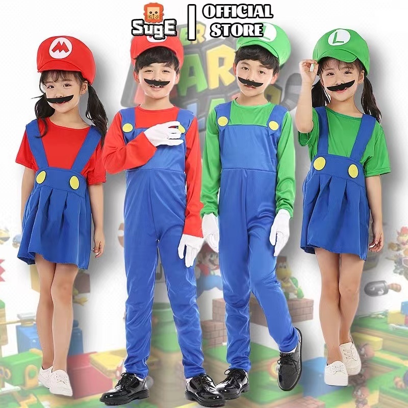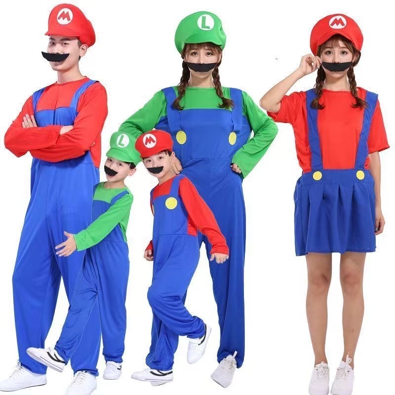 Super Mario Costume Adult Kids Anime Cosplay Costume Mario Performance Costume Halloween Fancy Dress
