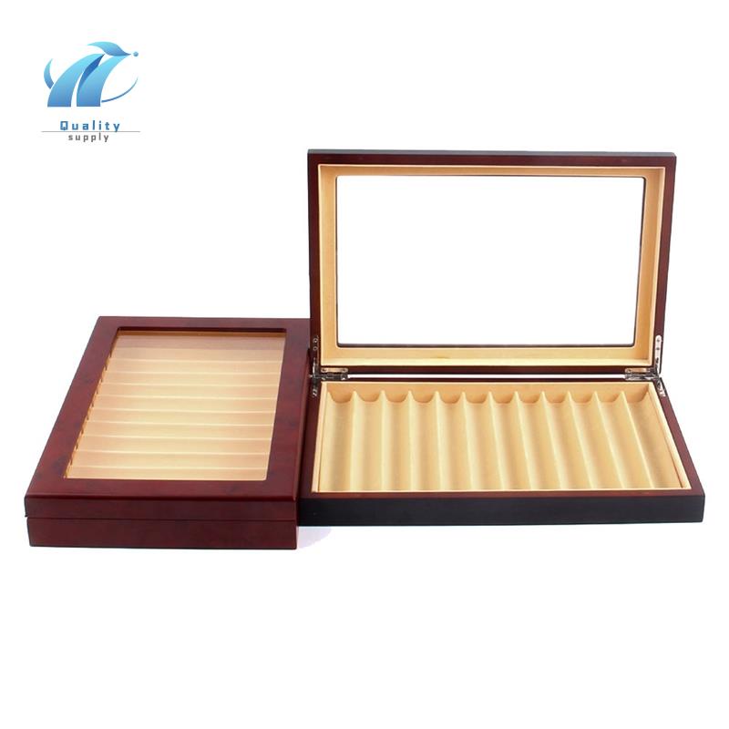 Superb 12 Grid Wooden Pen Display Case Storage Luxury Fountain Case Transparent Window Pen Box-Collection Organizer