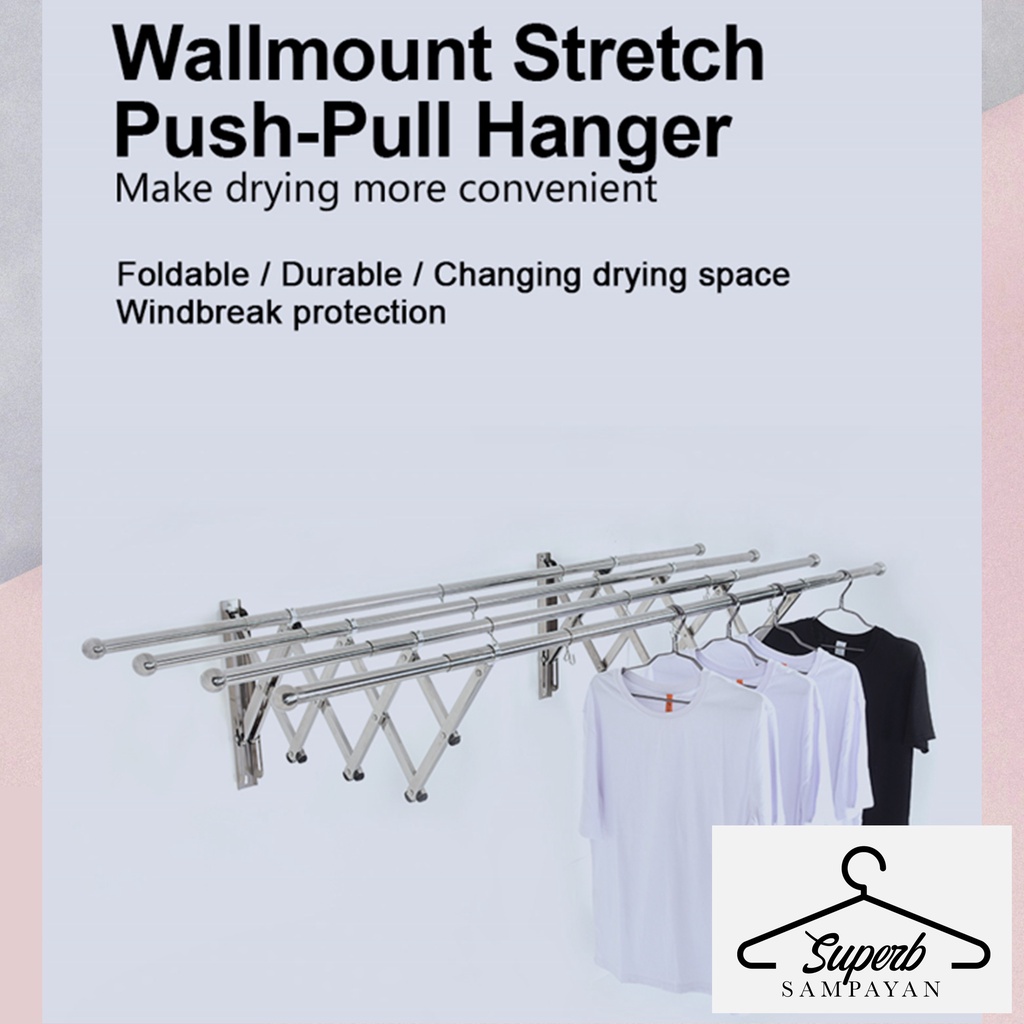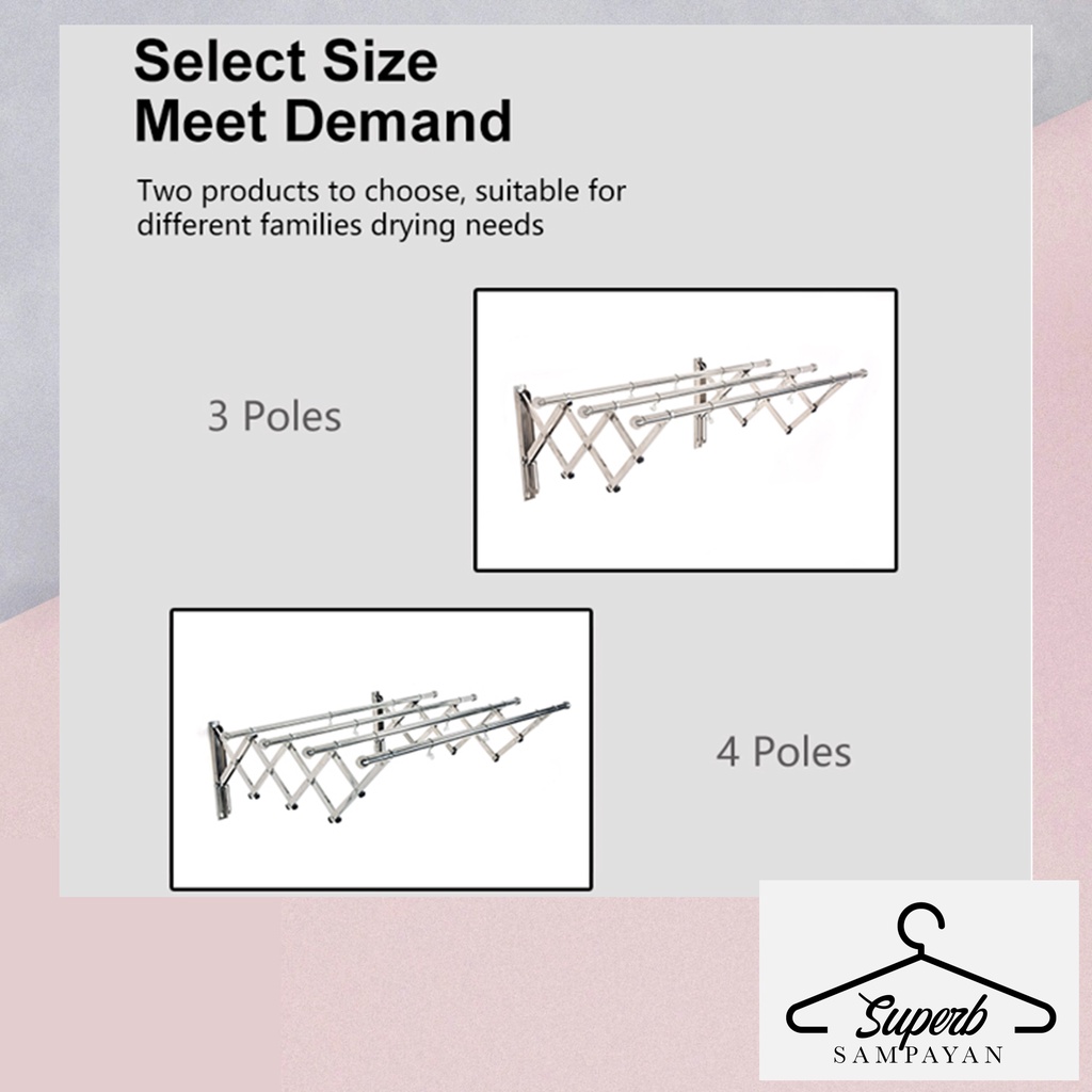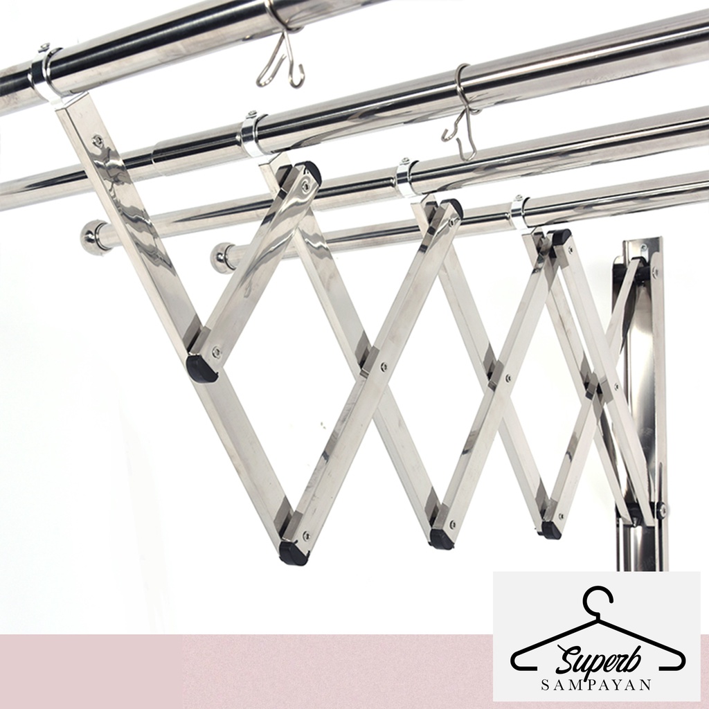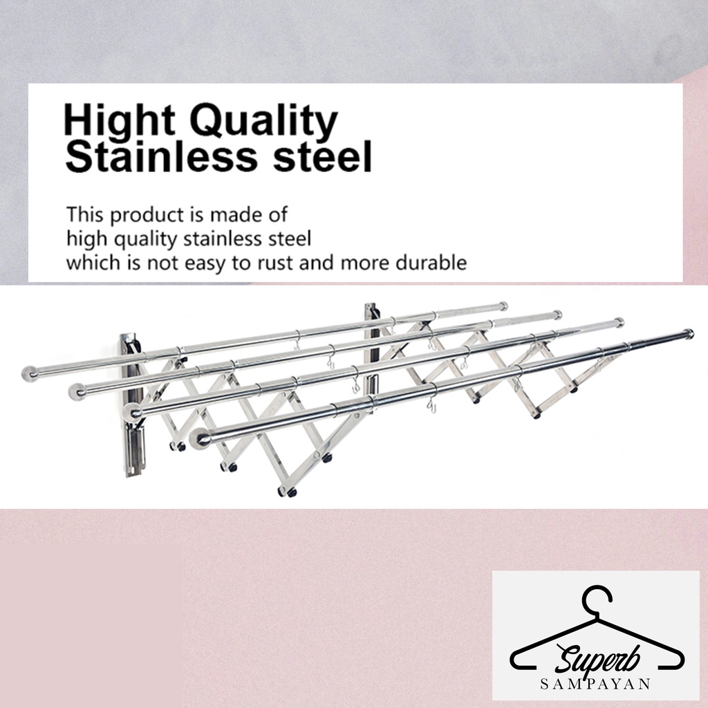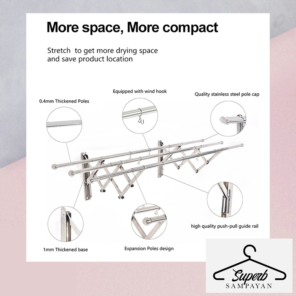 Superb Sampayan Clothes Drying Rack Wall Mounted Folding 4 Poles Retractable Stainless Steel