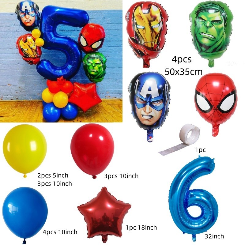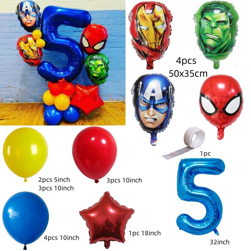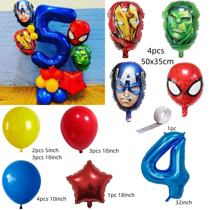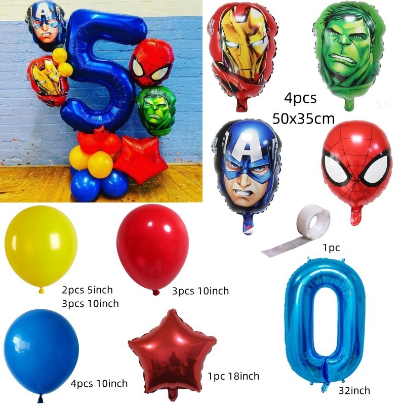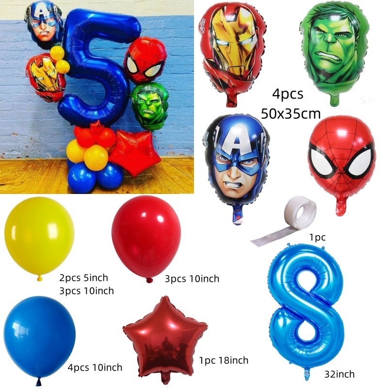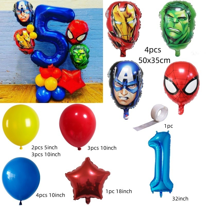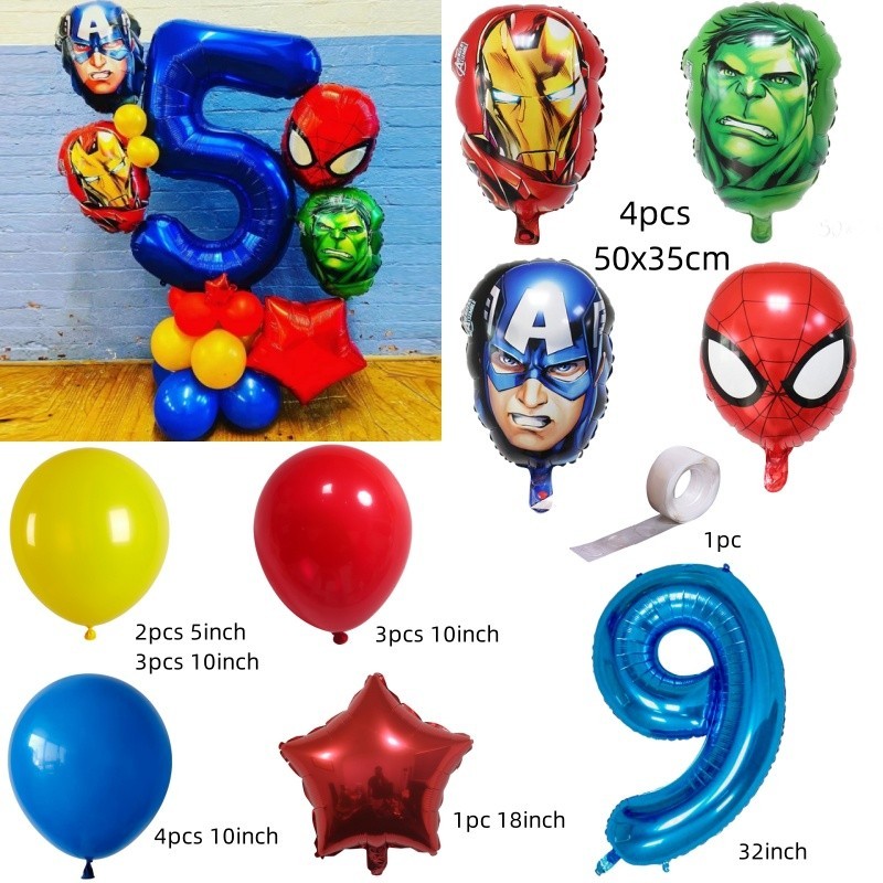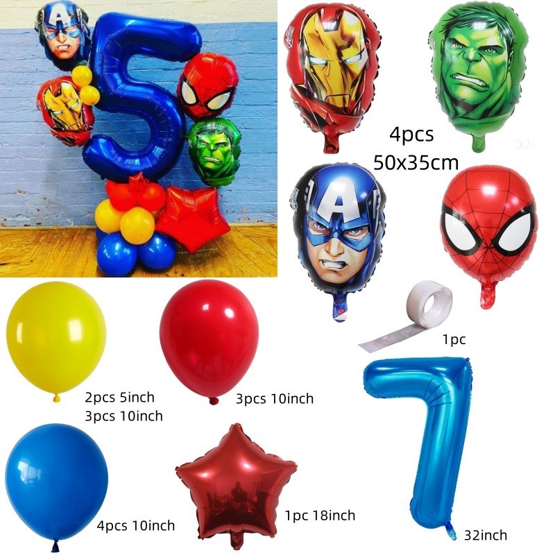 Superhero Balloons The Hulk Captain America Iron Man Spiderman Foil Balloons Birthday Decoration Set Kids Toys Party Needs