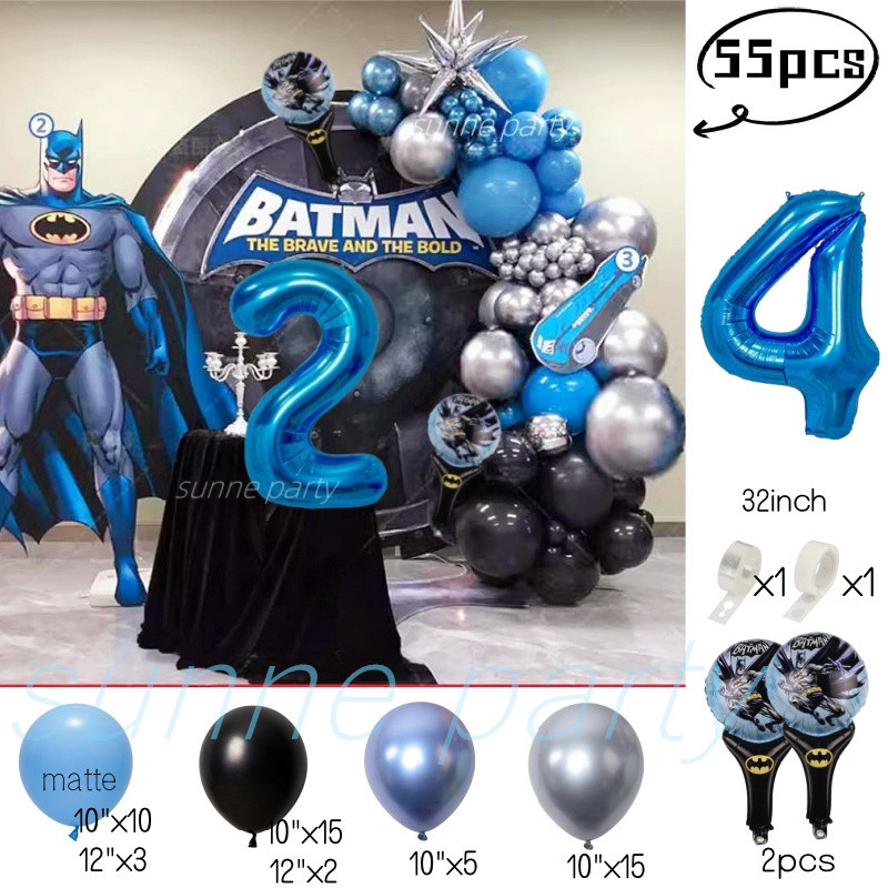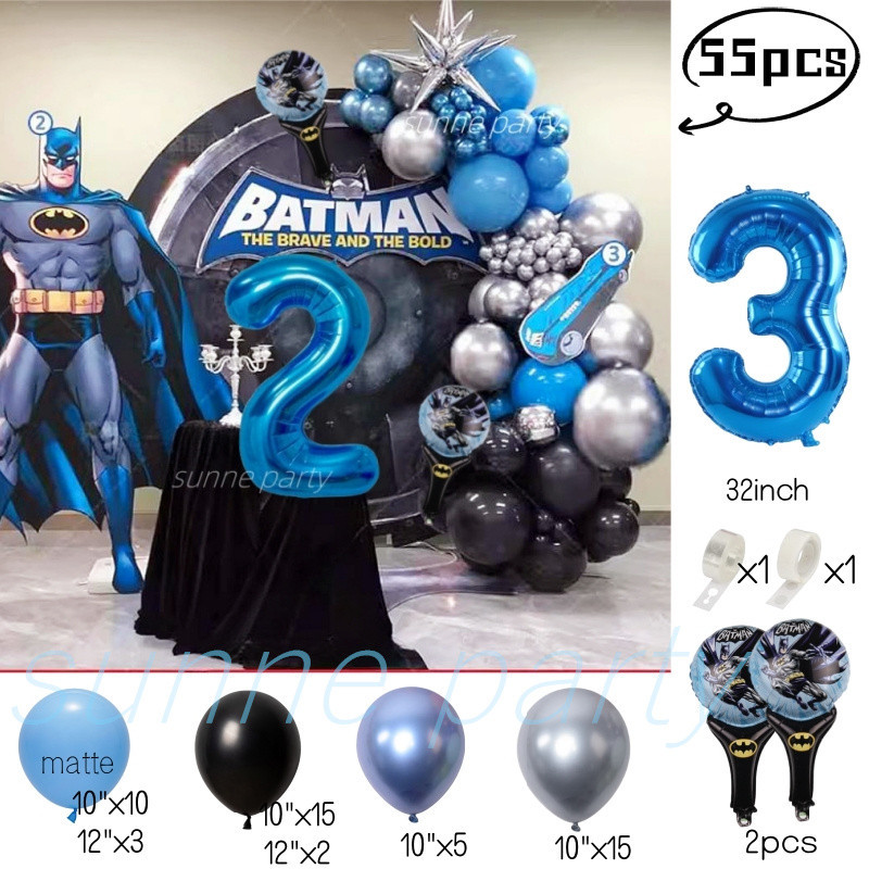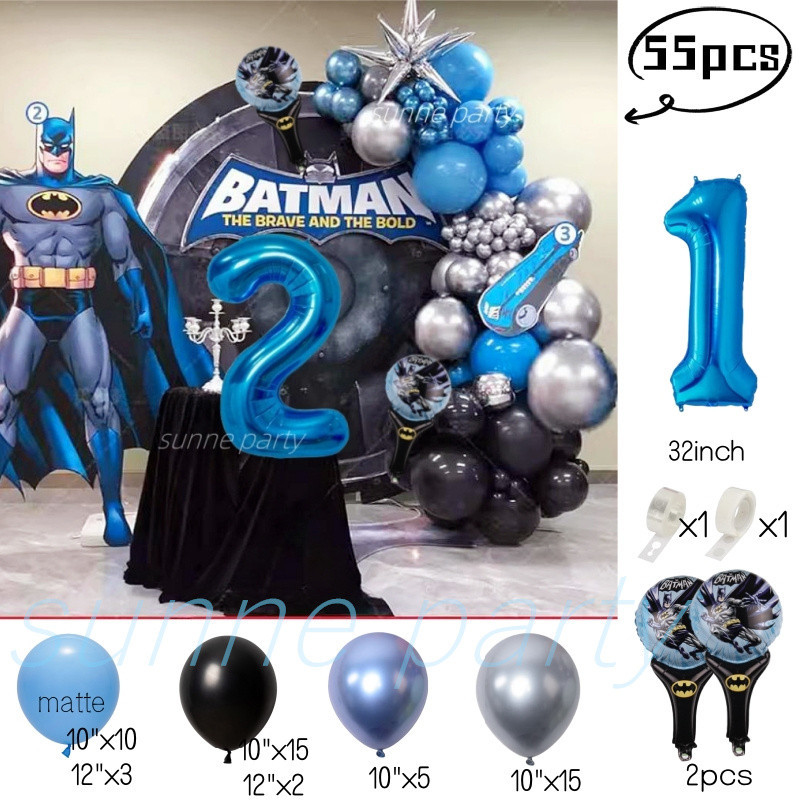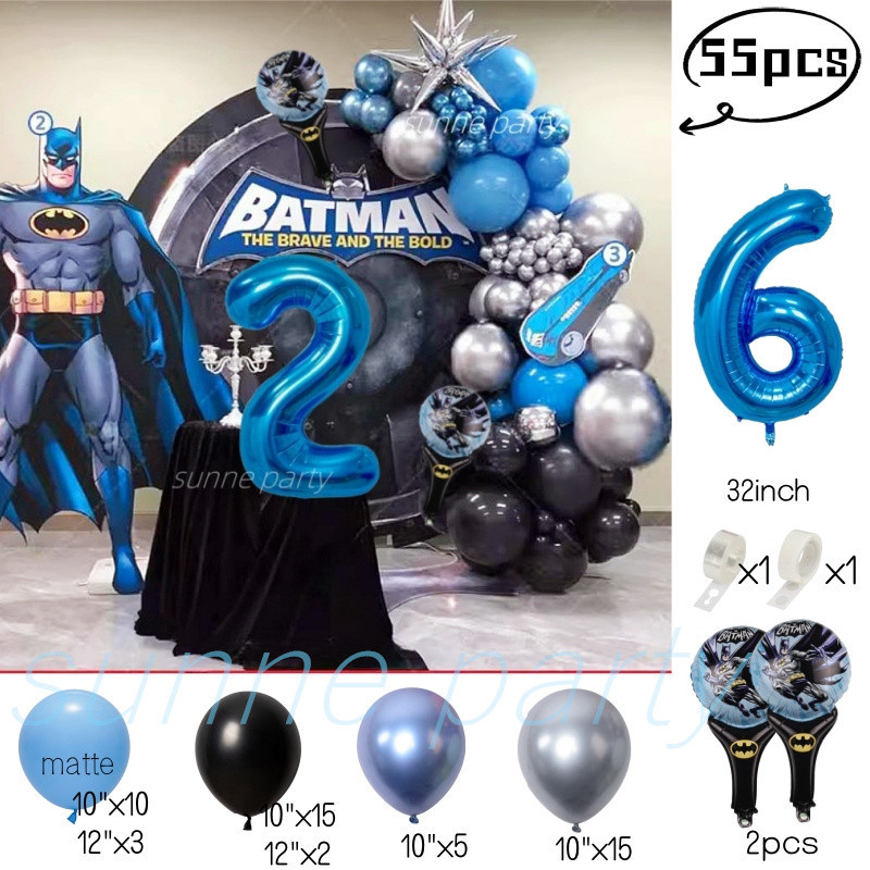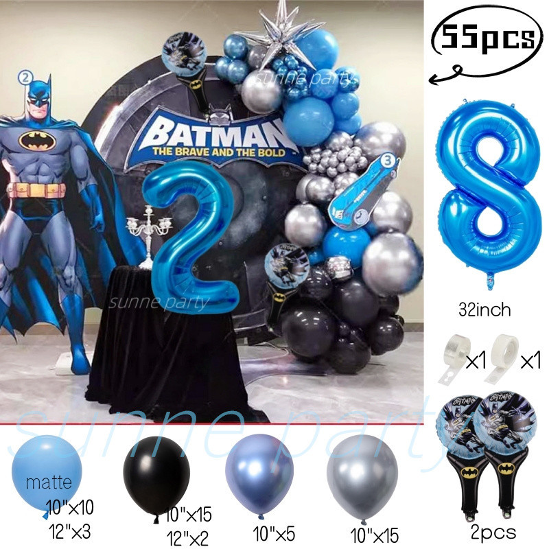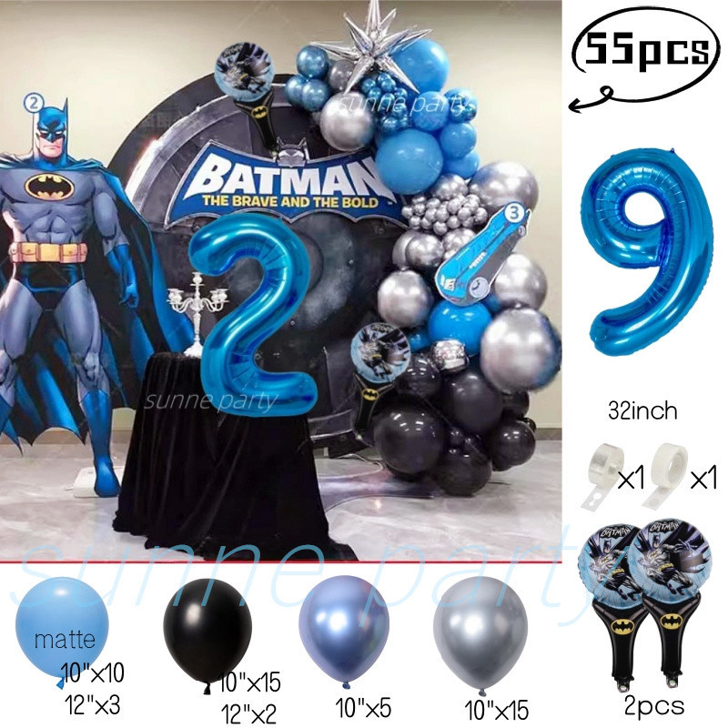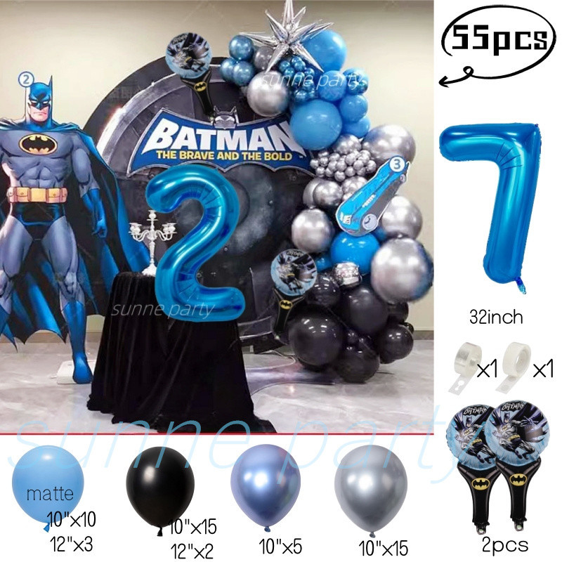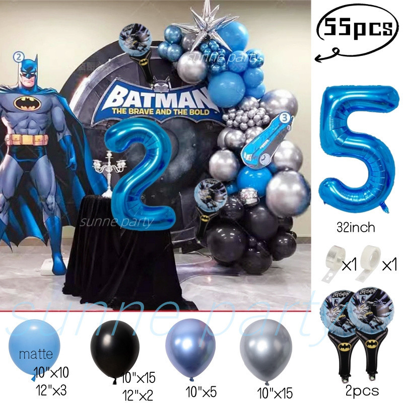 Superhero Batman Theme Balloons Garland Kit Blue Number Balloon Baby Shower Birthday Party Needs