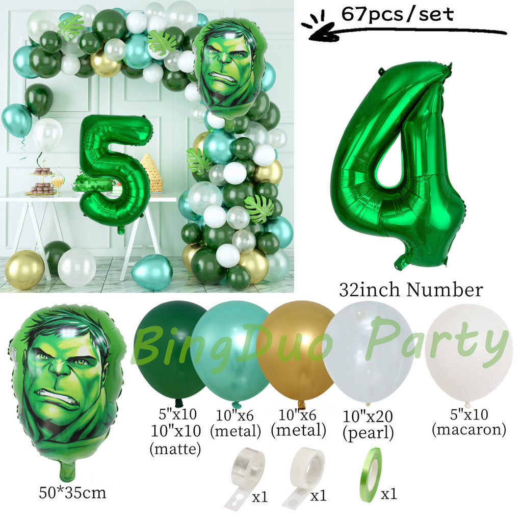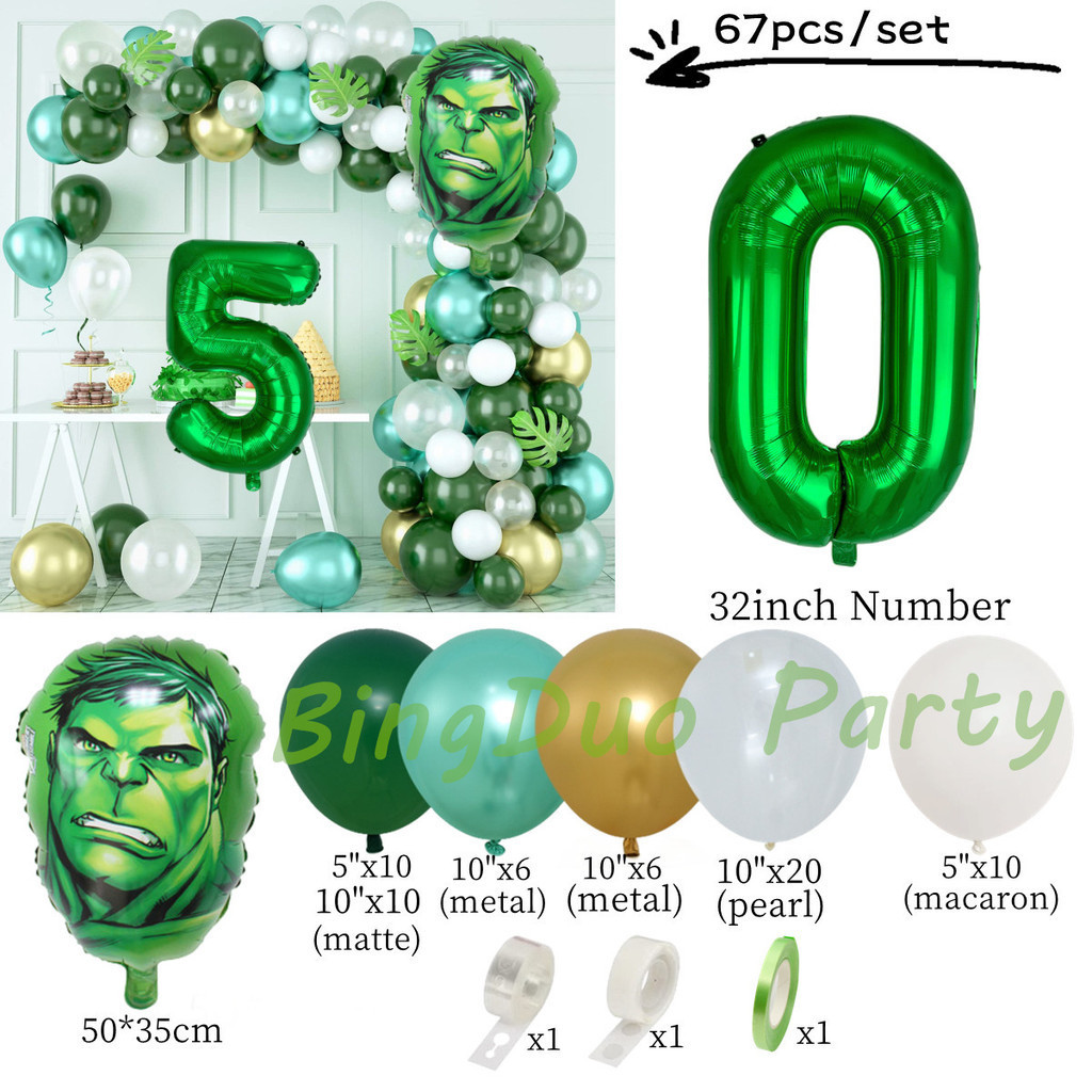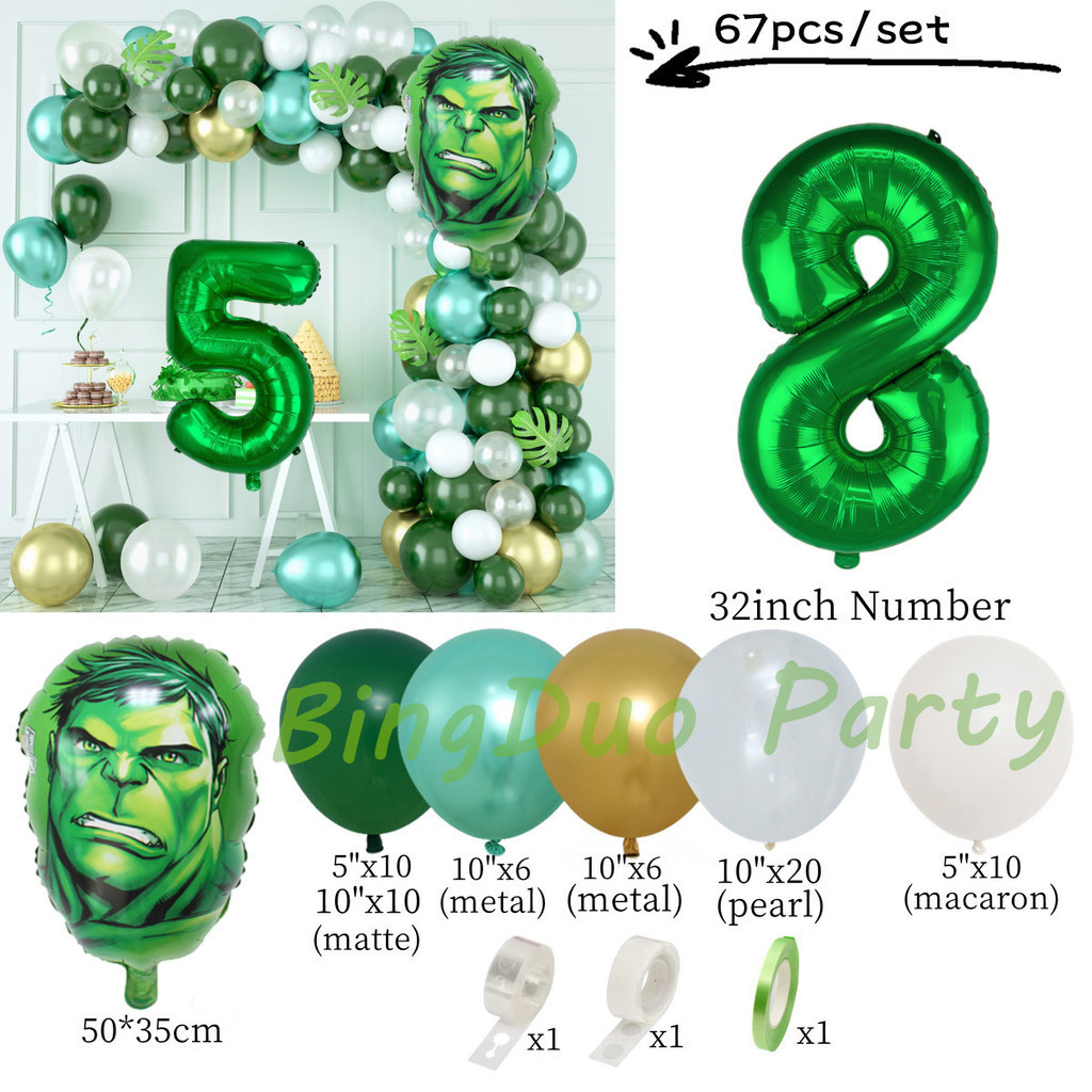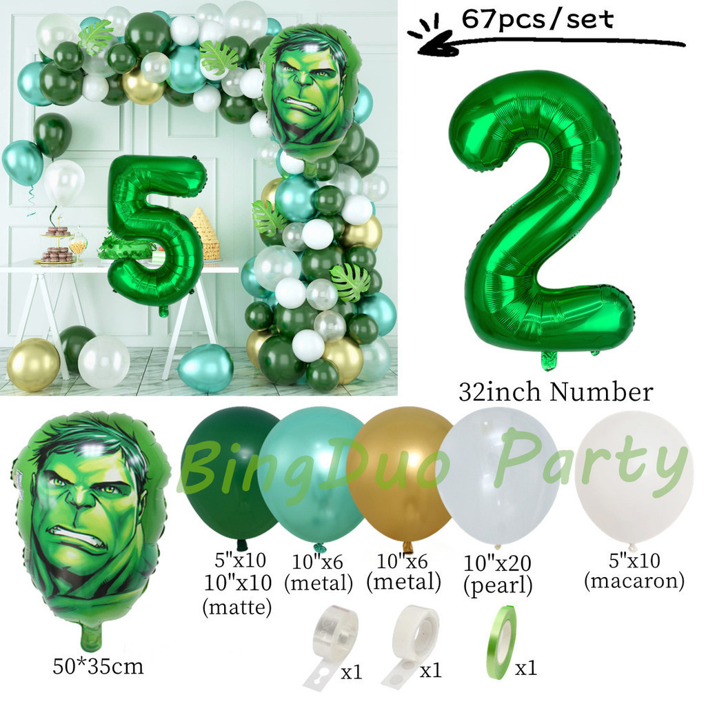 Superhero Hulk Theme Balloons Garland Arch Kit 32inch Green Number Metallic Balloon Baby Shower Birthday Party Supplies
