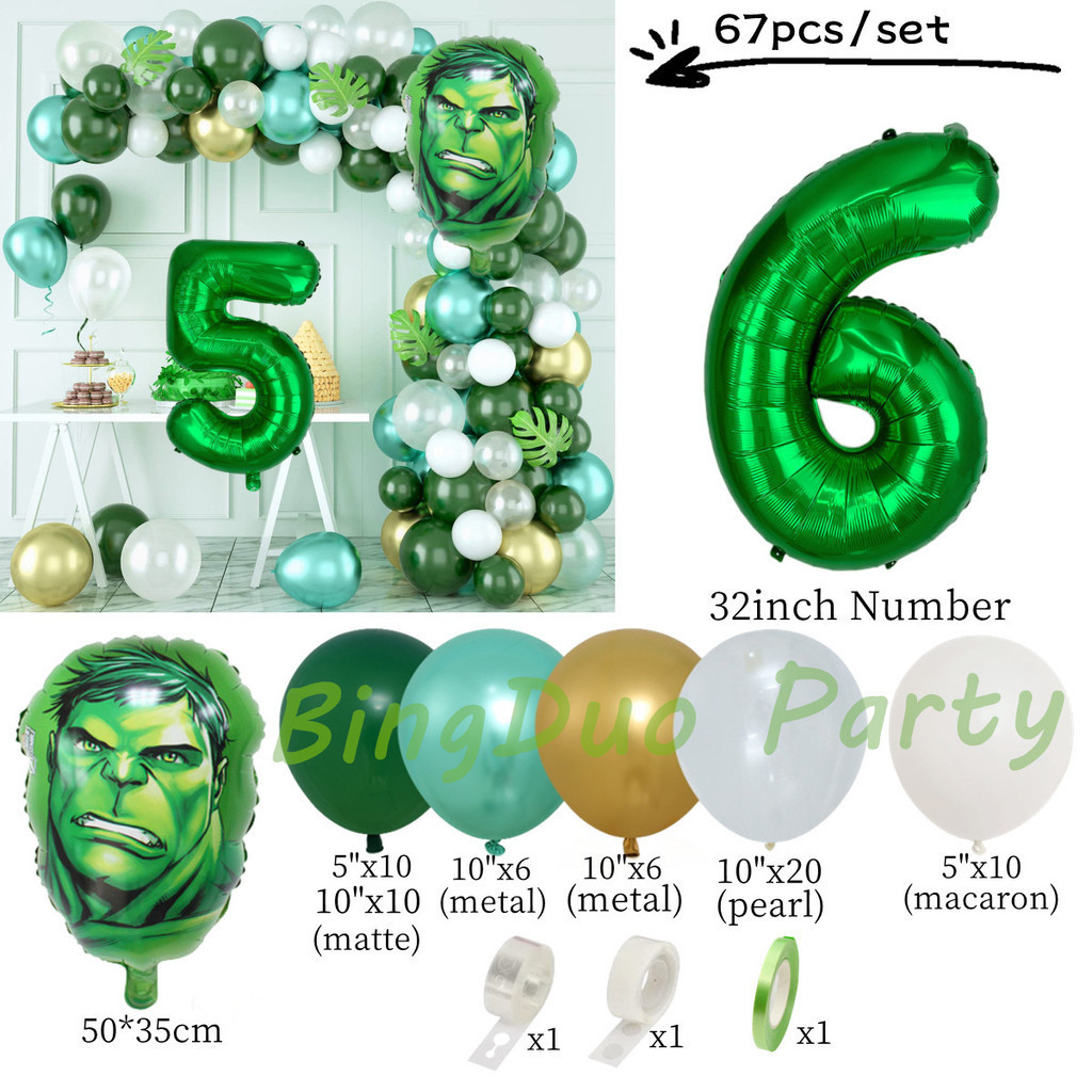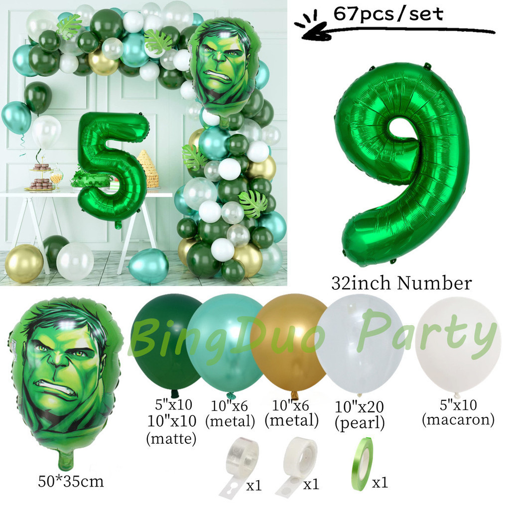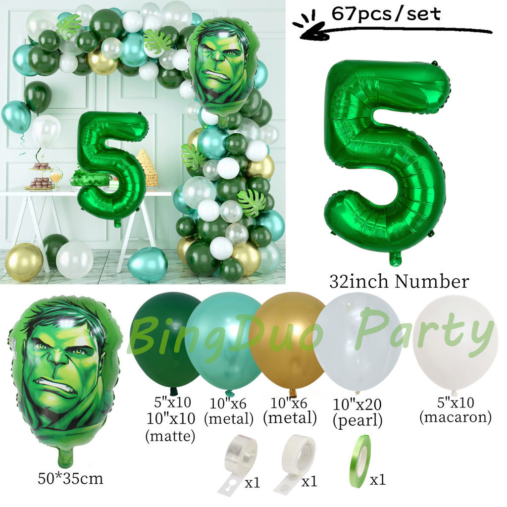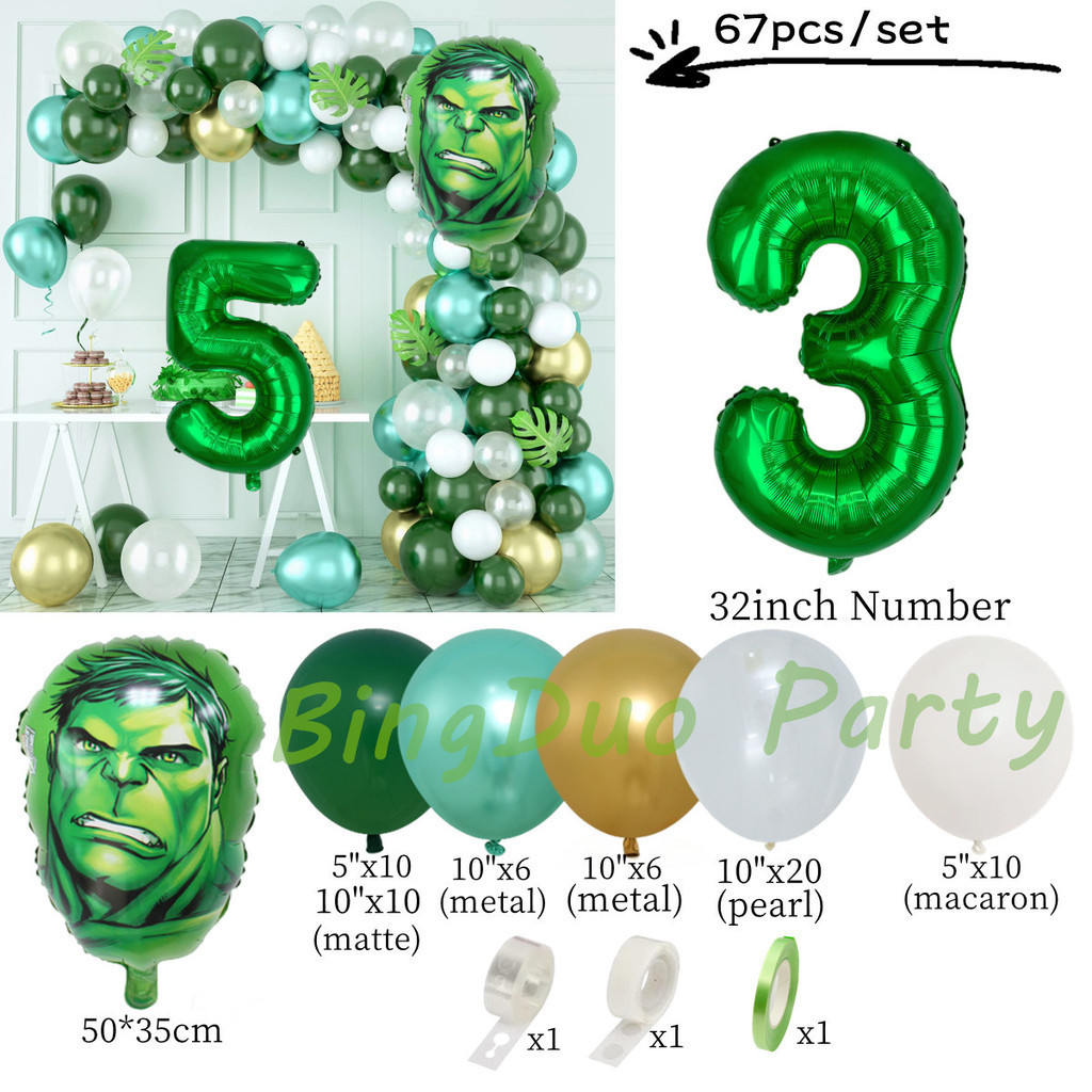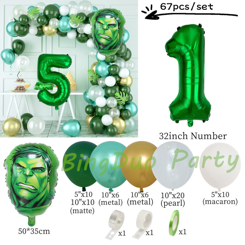 Superhero Hulk Theme Balloons Garland Arch Kit 32inch Green Number Metallic Balloon Baby Shower Birthday Party Supplies