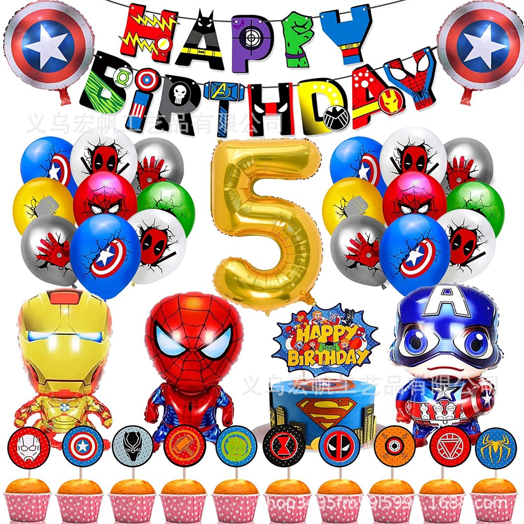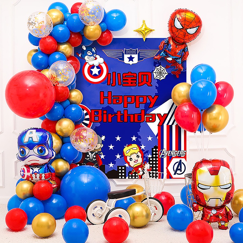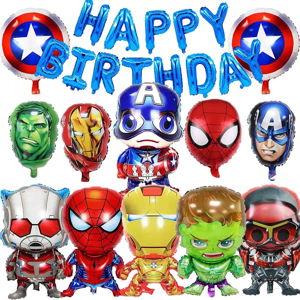 Superhero Marvel Balloon Party Decorations Spiderman Captain America Ant Man Foil Balloon Red Blue Latex Balloon Party Needs