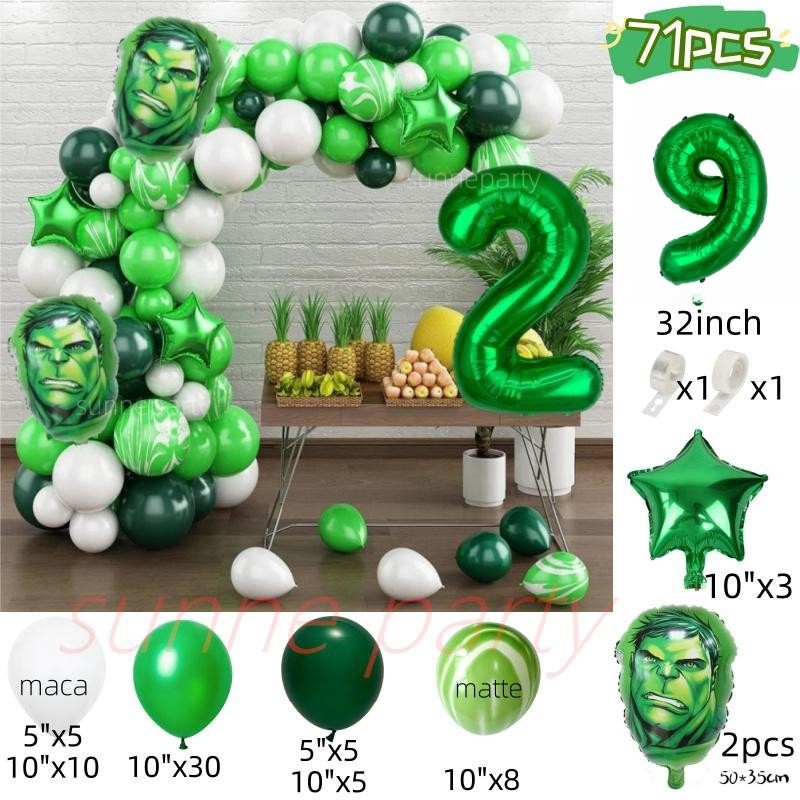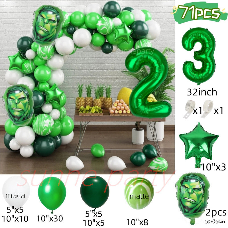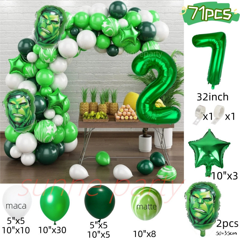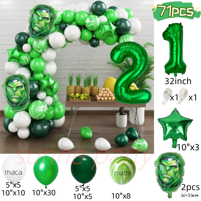 Superhero The Avengers Hulk Hero Balloons Garland Arch Kit Green Number Foil Balloon Baby Shower