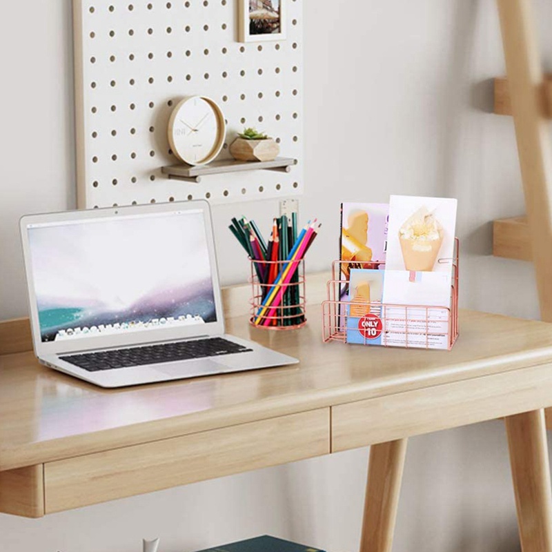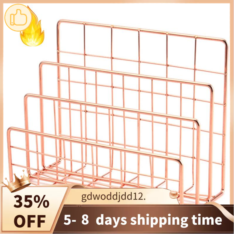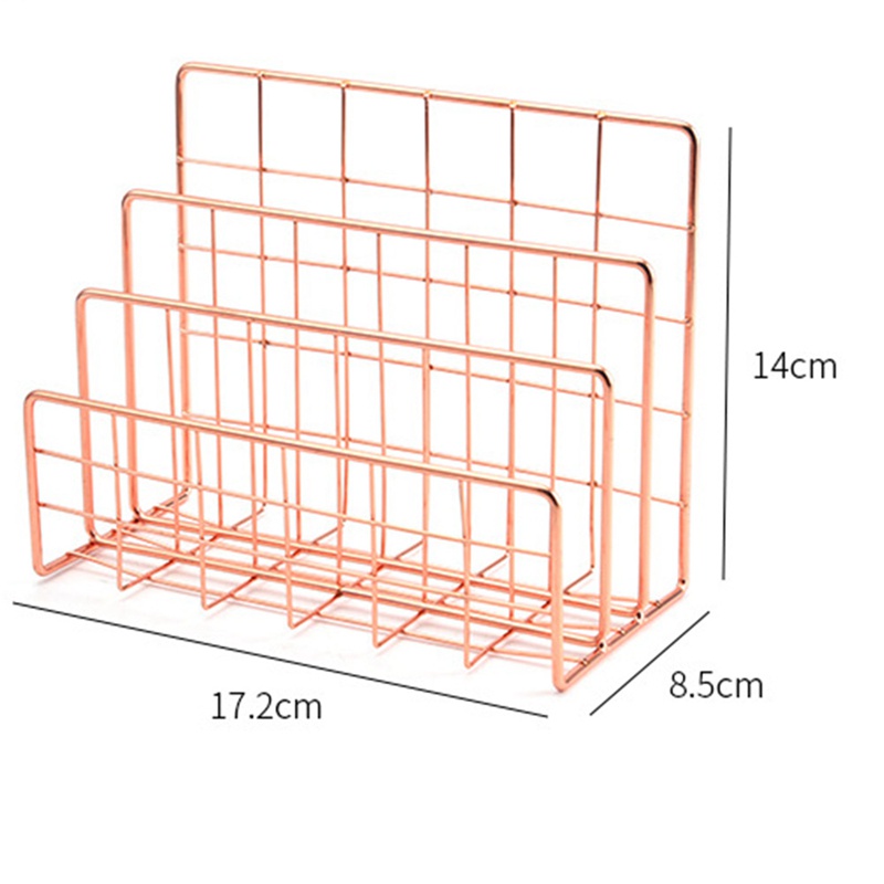 Superior Bookshelf Office Desktop Rose Gold Metal Book Block Three Layer Desktop Magazine Shelf Book Holder