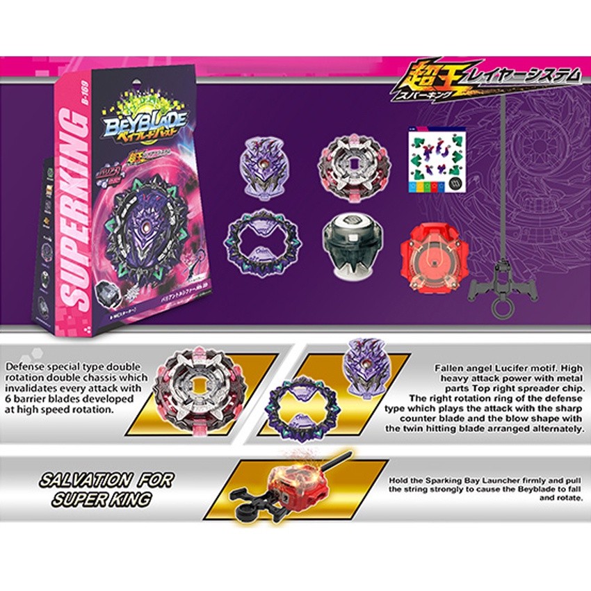 Superking Variant Lucifer Mobius Beyblade Burst Dual LR Sparking Ripcord Launcher B169