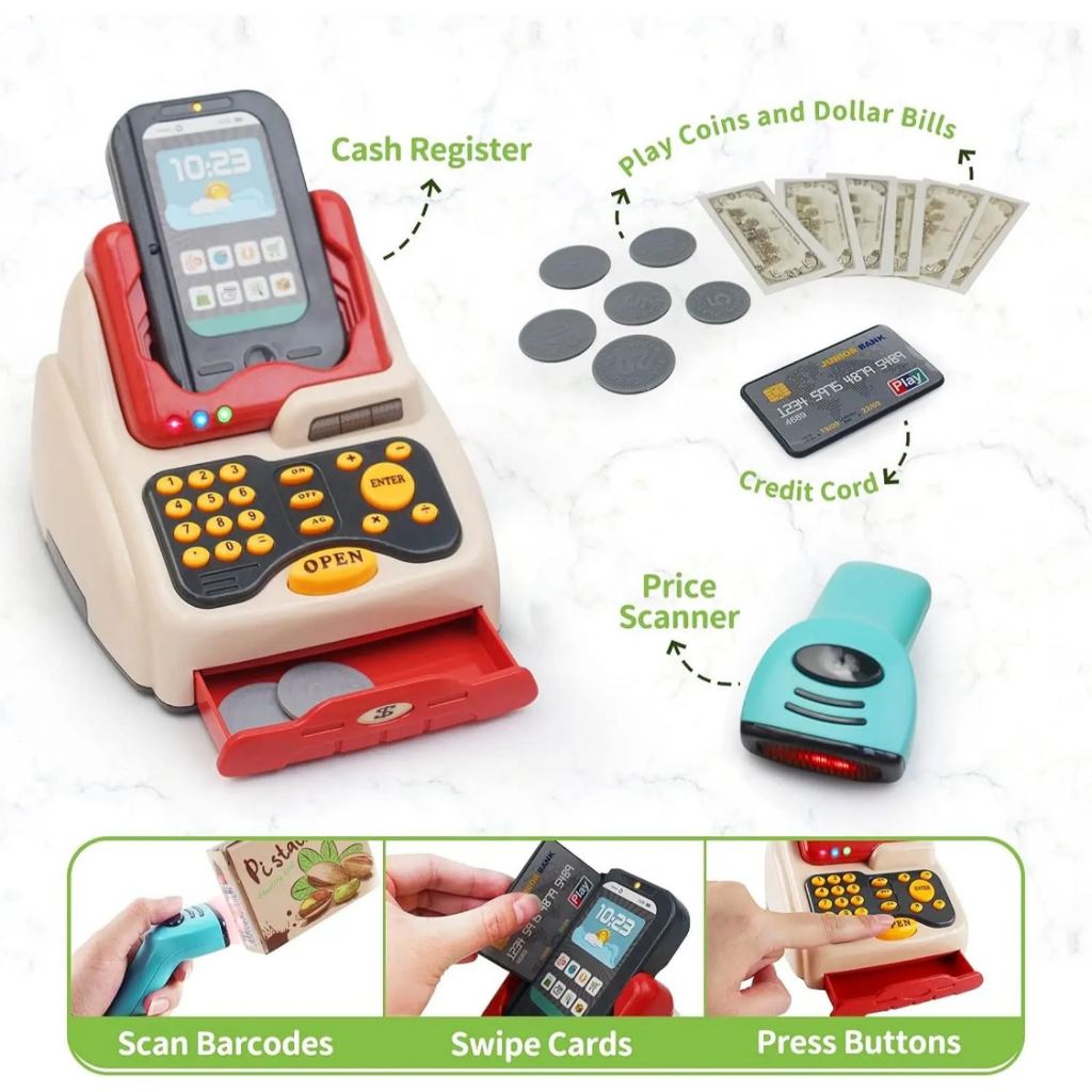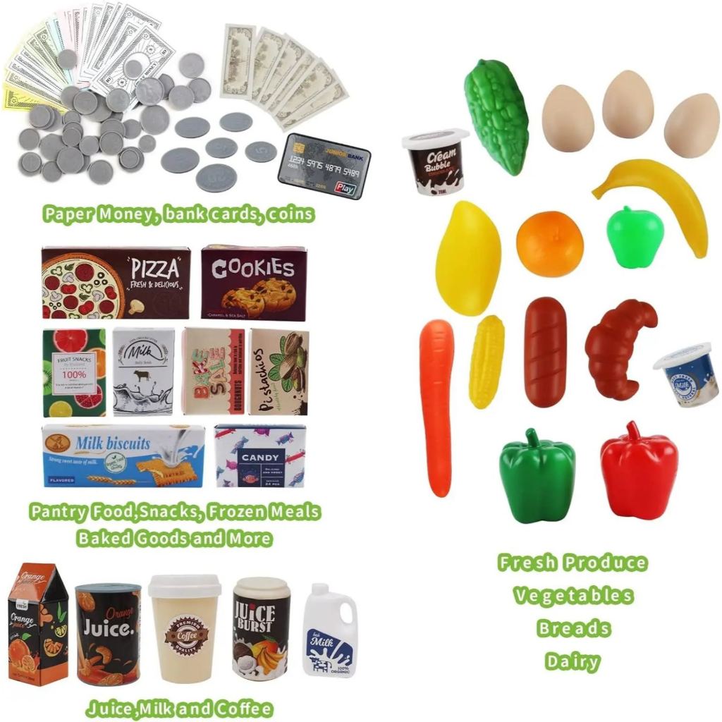 Supermarket Cash Register Shop Trolley Cart Toy Set Pretend Play 48pcs Grocery Shopping Toy Set