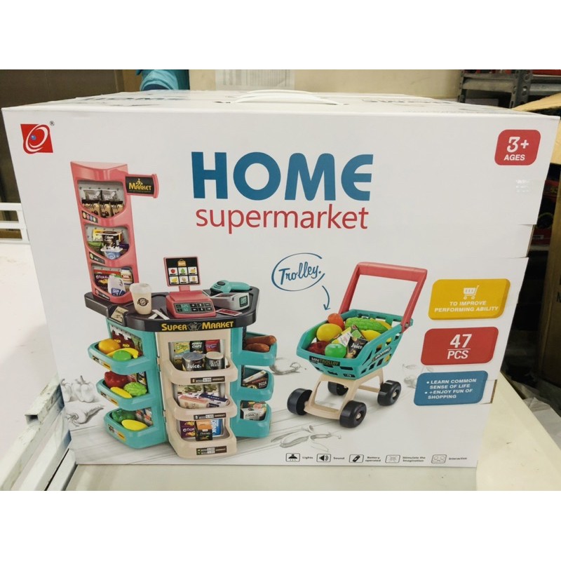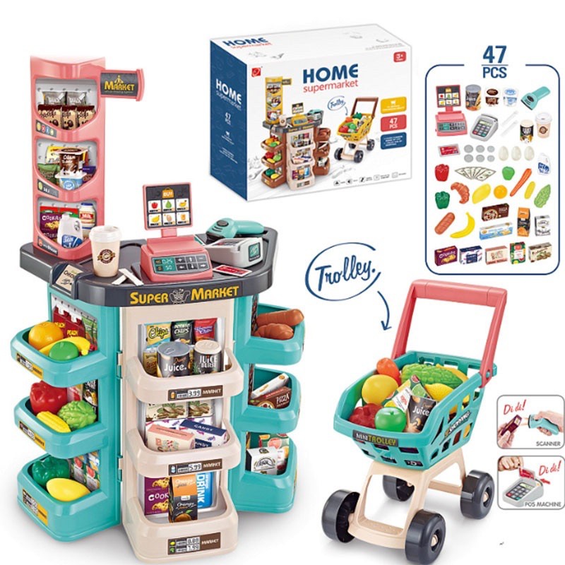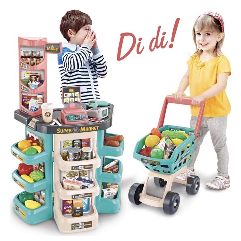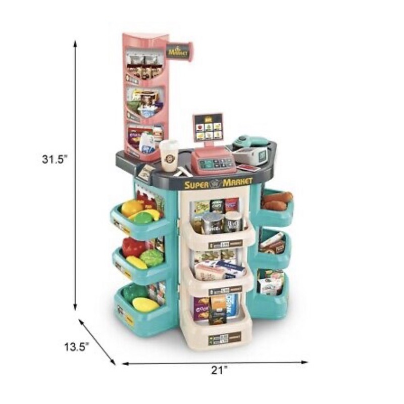 Supermarket Grocery Store Kids Pretend Playset with Shopping Cart & Scanner
