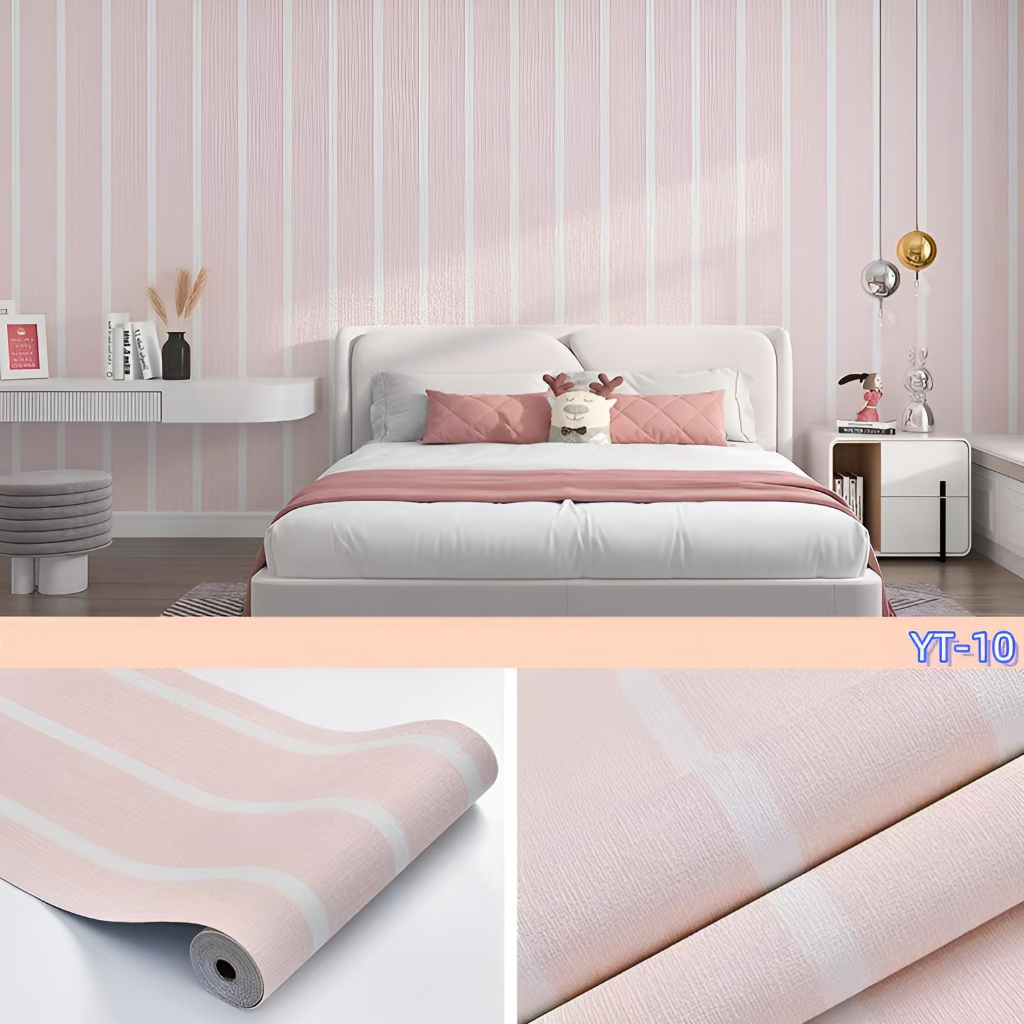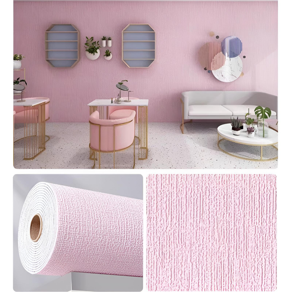 Supermax PINK Striped Wallpaper Faux Linen Textured Wall paper 280cm * 50cm Stick Contact Paper