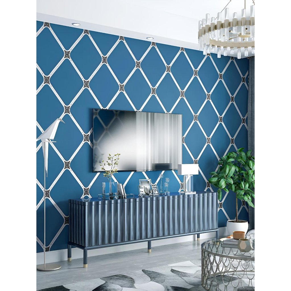 Supermax Wallpaper blue Checkered Star Wood design PVC Self adhesive Waterproof Wall Paper Sticker