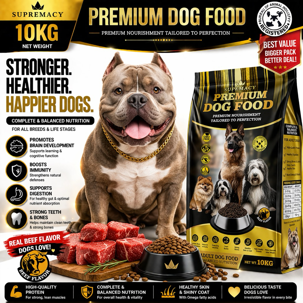Supremacy Premium Dog Food 10KG Chicken Salmon Low Salt Picky Eaters Hypoallergenic All Breeds Puppy