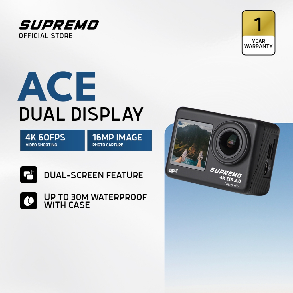 Supremo Ace 4K Dual Display Waterproof Action Camera 4K/60FPS Remote Control WiFi Waterproof Case