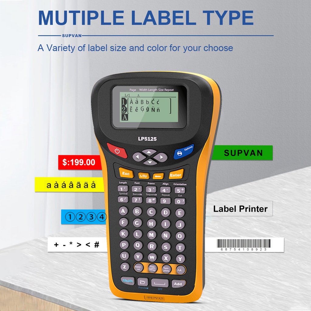 SUPVAN LP5125M Labeling Machine Thermal Transfer Sticker Label Maker Portable Adhesive Wrap Labeling Printers Automatic Full Cut