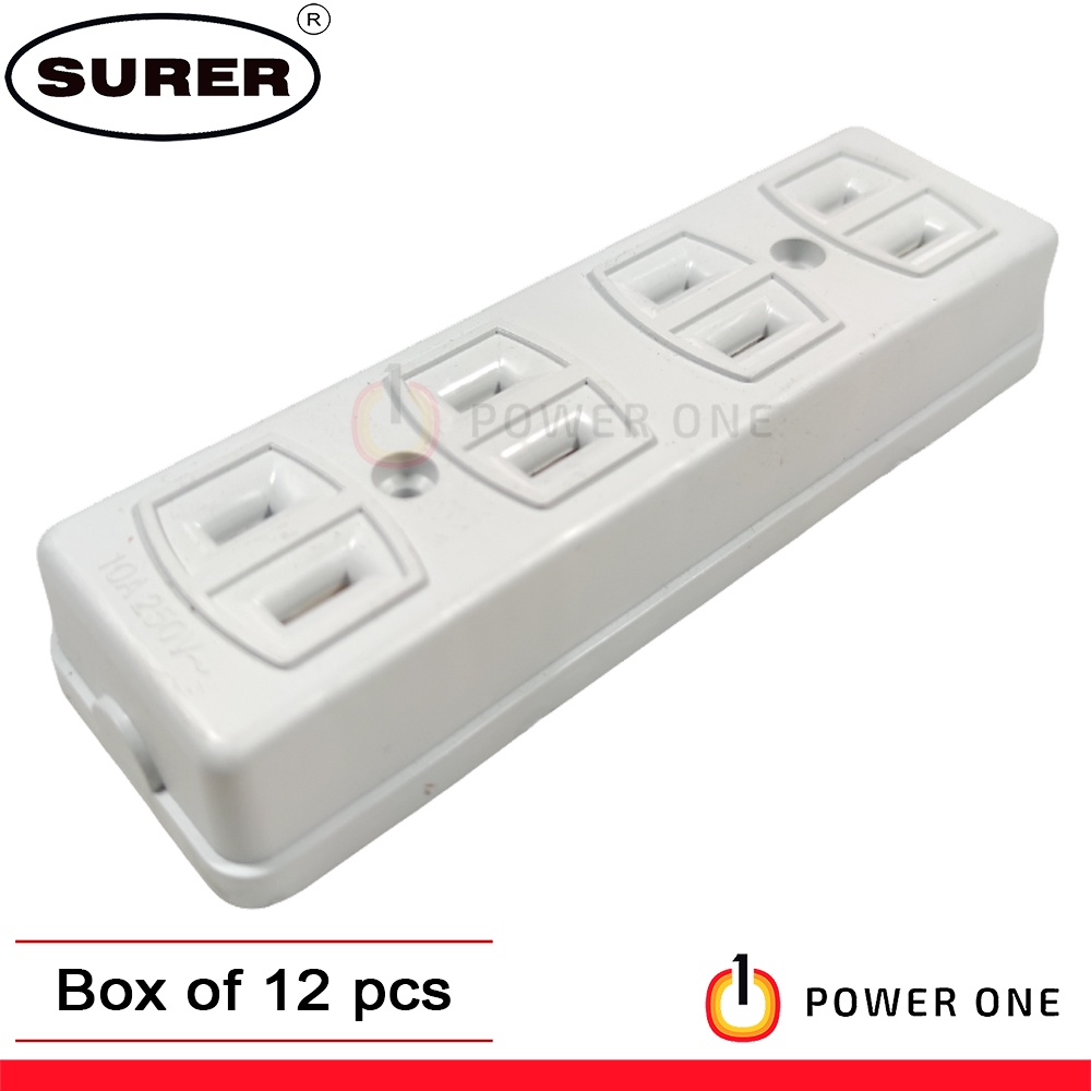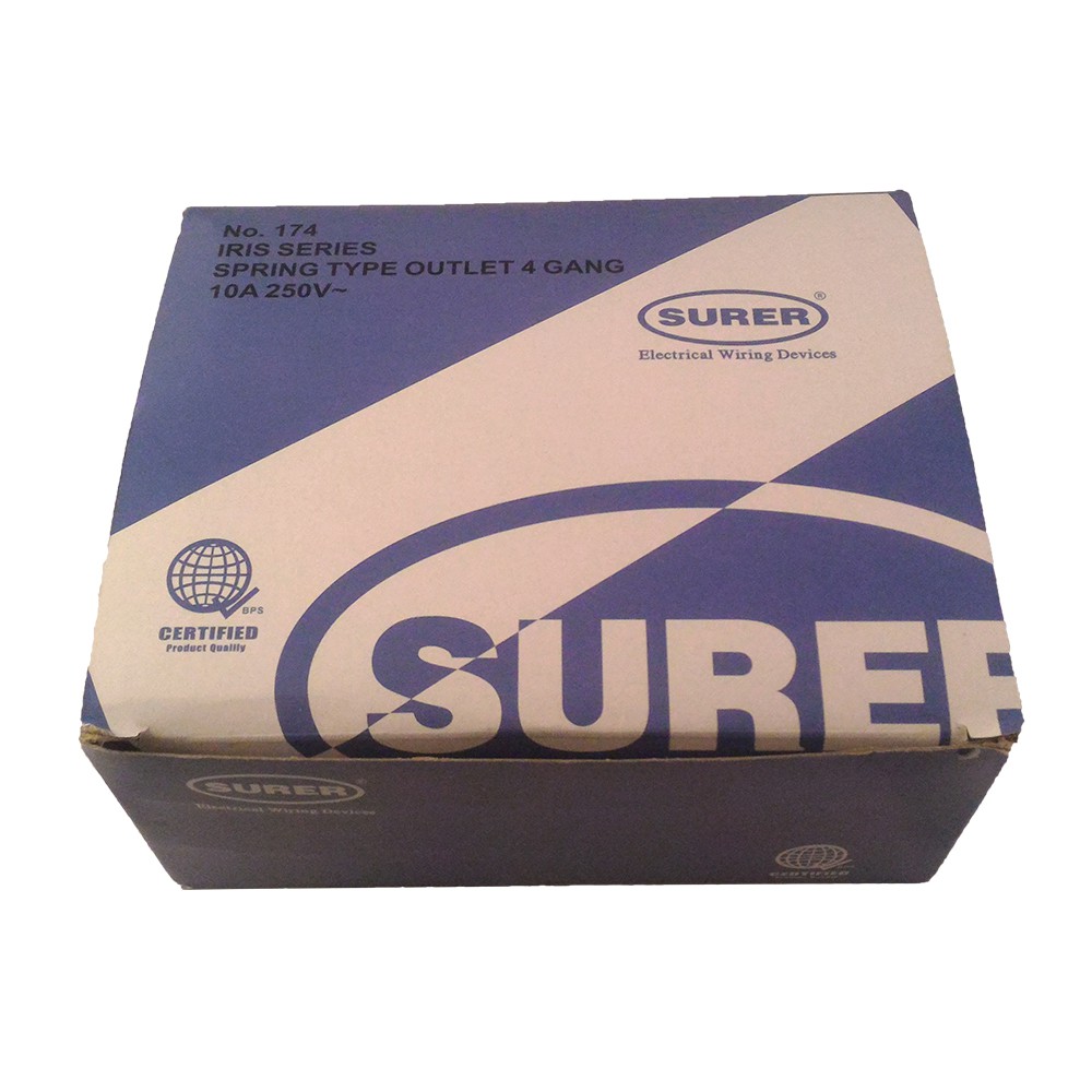 Surer 174 4-Gang Convenience Outlet, Spring Type (10A) (1pc or 12 pcs) (100 Series)