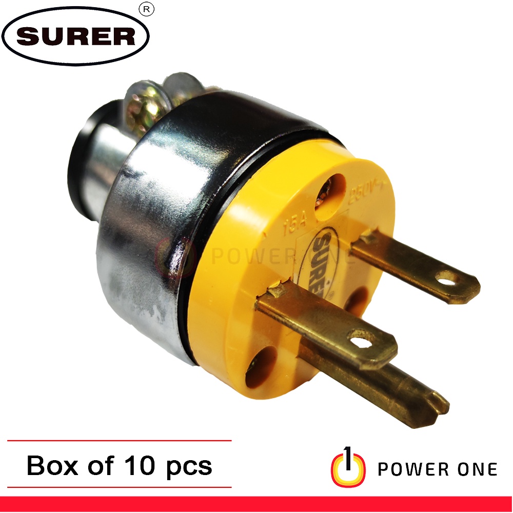 Surer 331 3-Pin EDF Armored Plug Head, Tandem with Ground (15A) (Box of 10pcs) (300 Series)