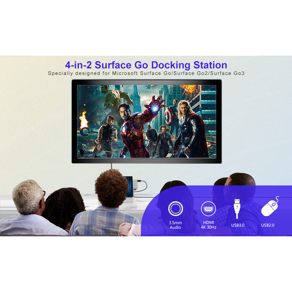 Surface Go/Go2/Go3/Go4 Docking Station 4in1 Microsoft Surface Go Accessories with 4K HDMI+USB 3.0 Port Hub+3.5mm Audio Adapter USB Adapter for Surface Go4/Go3/Go2/Go
