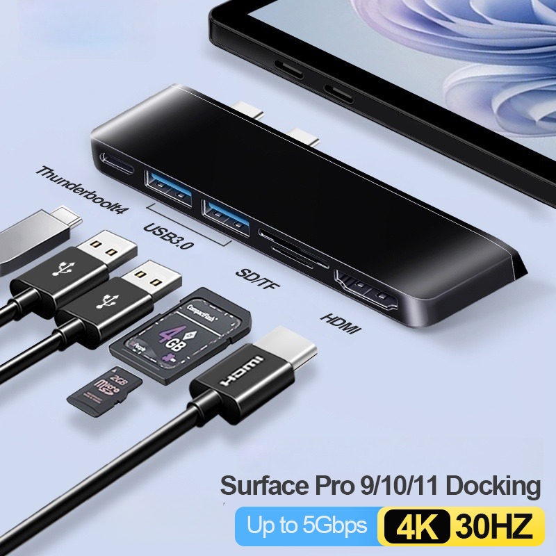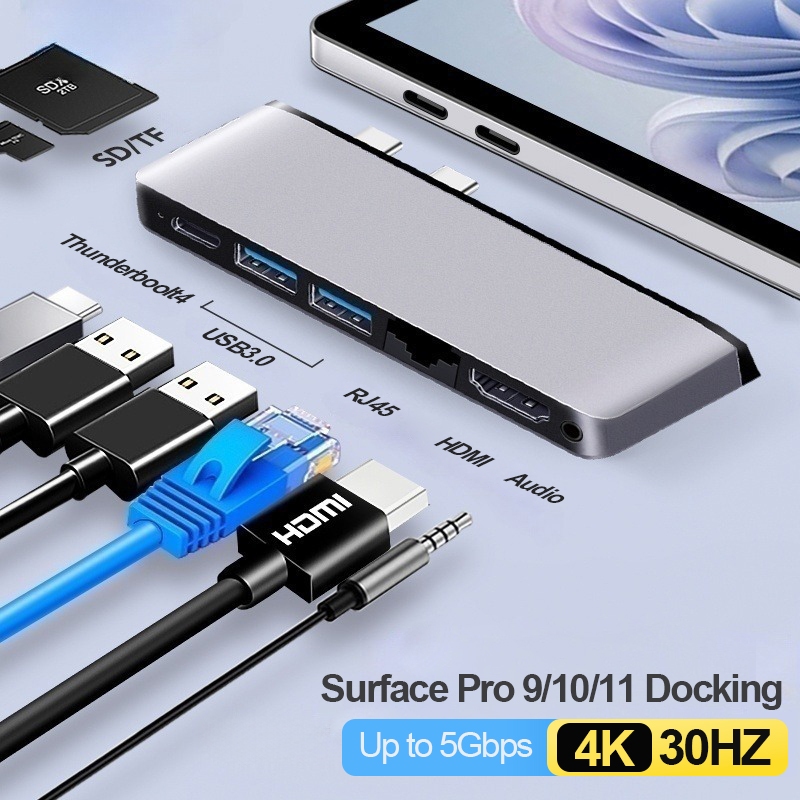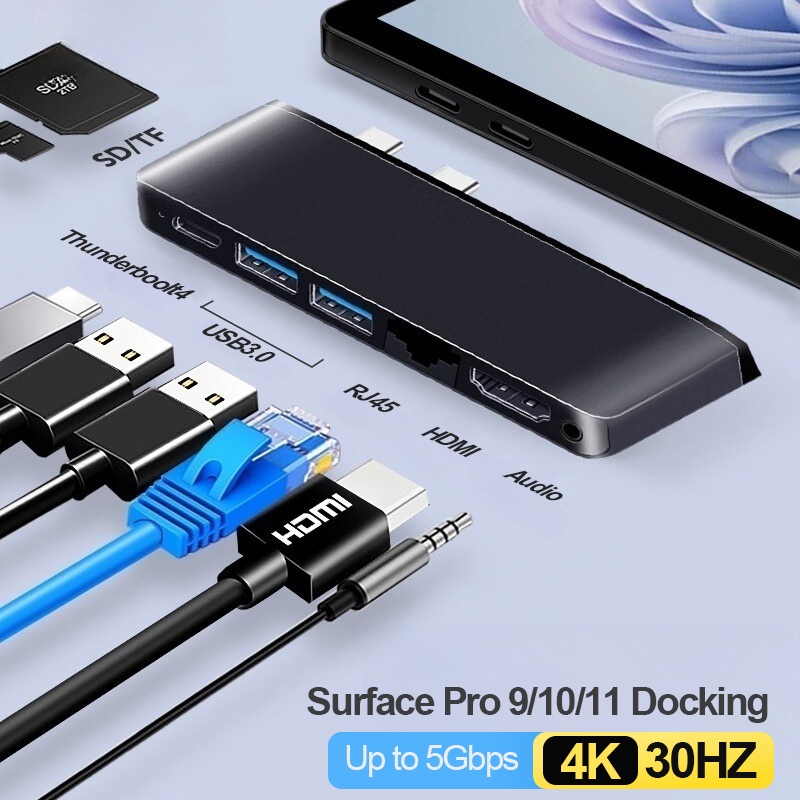 Surface Pro 12inch/11/10/9/8/7/6/5 Hub Docking Station Adapter HDMI 4K USB3.0 RJ45 for Microsoft Surface