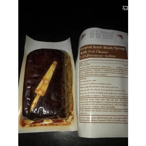 Surgical Scrub Brush / Sponge With Nail Cleaner (W/ Povidone With Iodine)