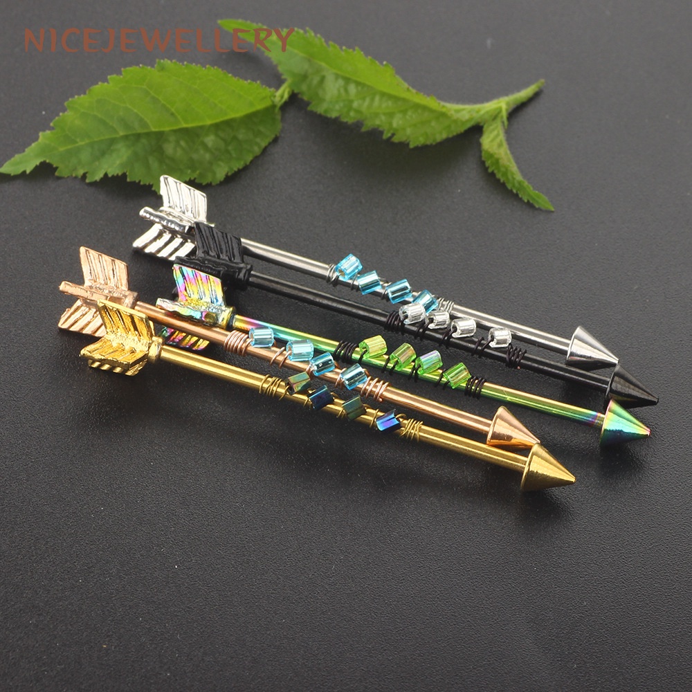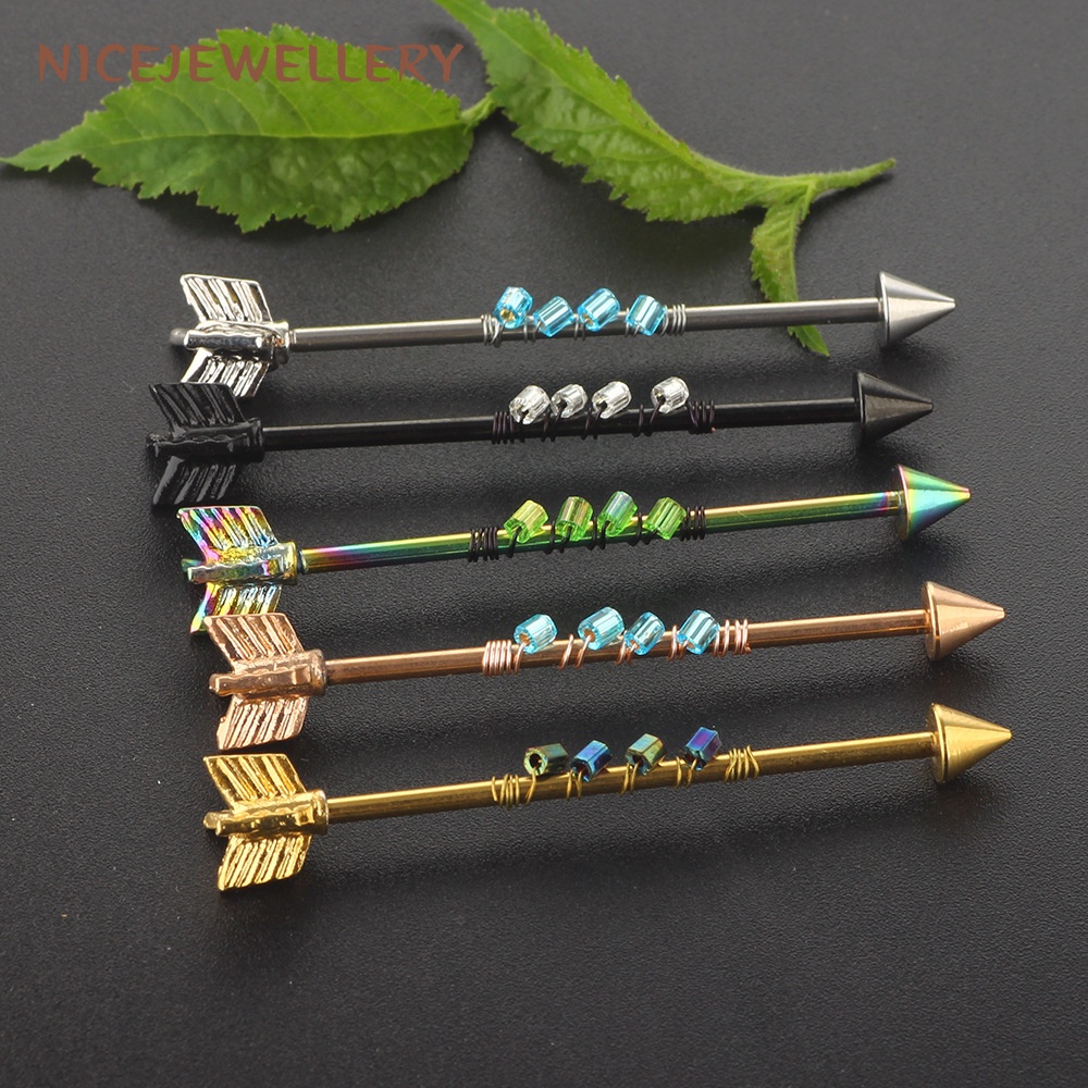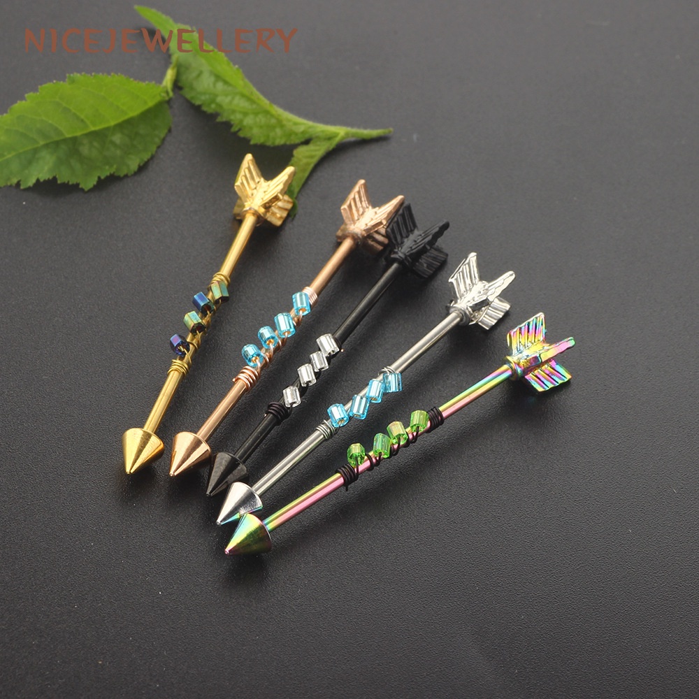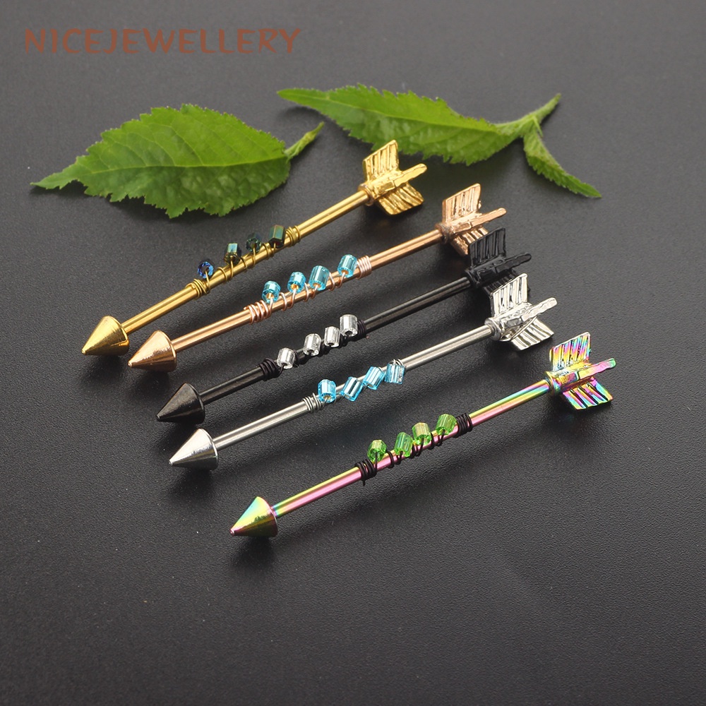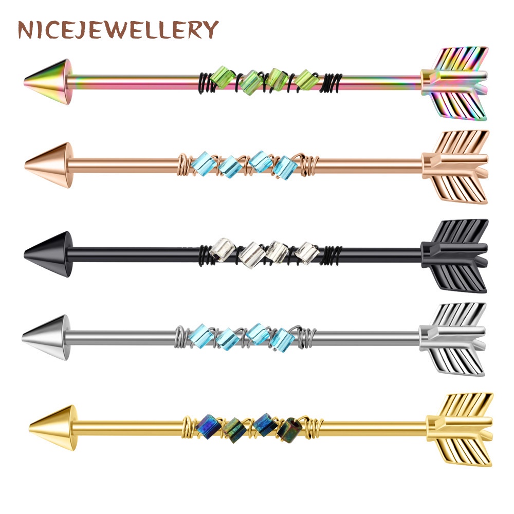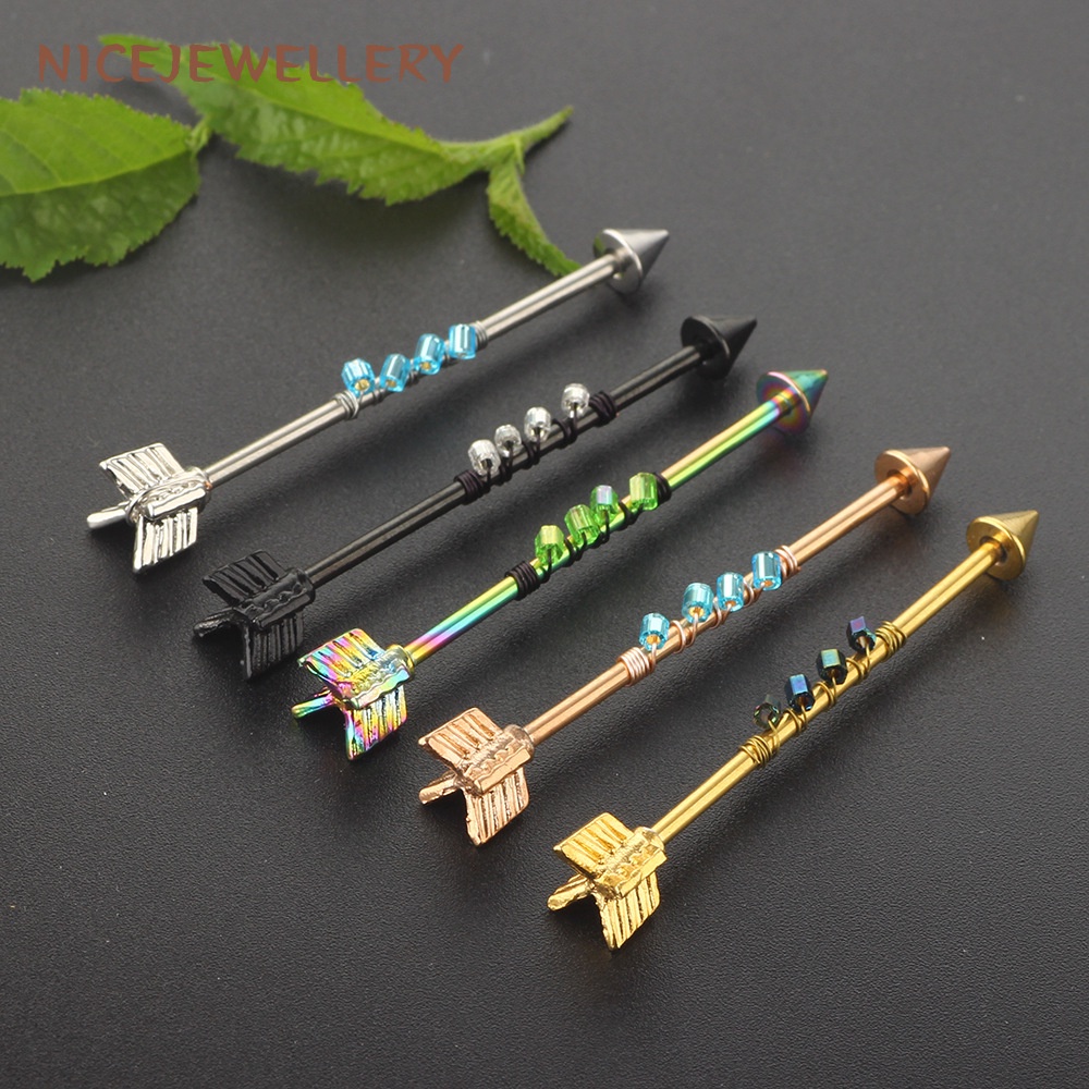 Surgical Steel Industrial Barbell Piercing Arrow Shape Ear Piercing 1pc 14G Barbell Ear Stud