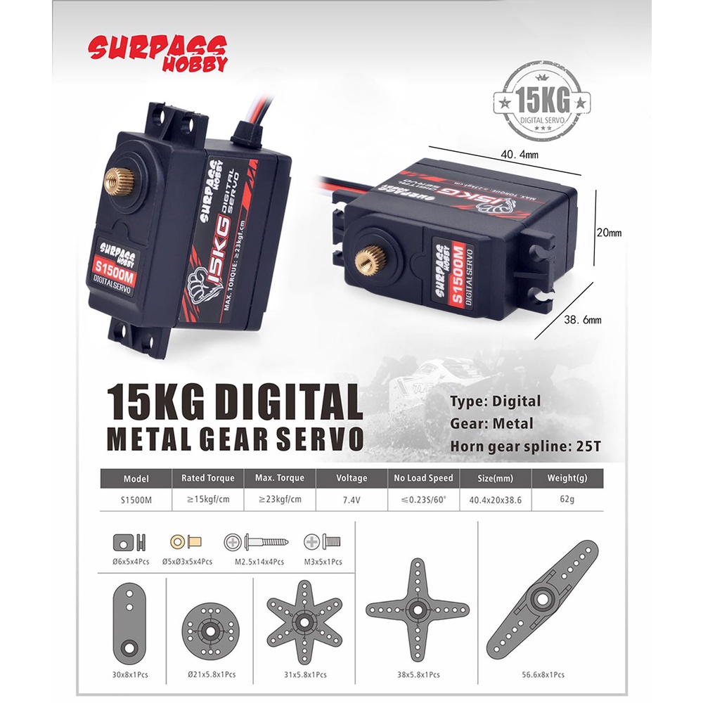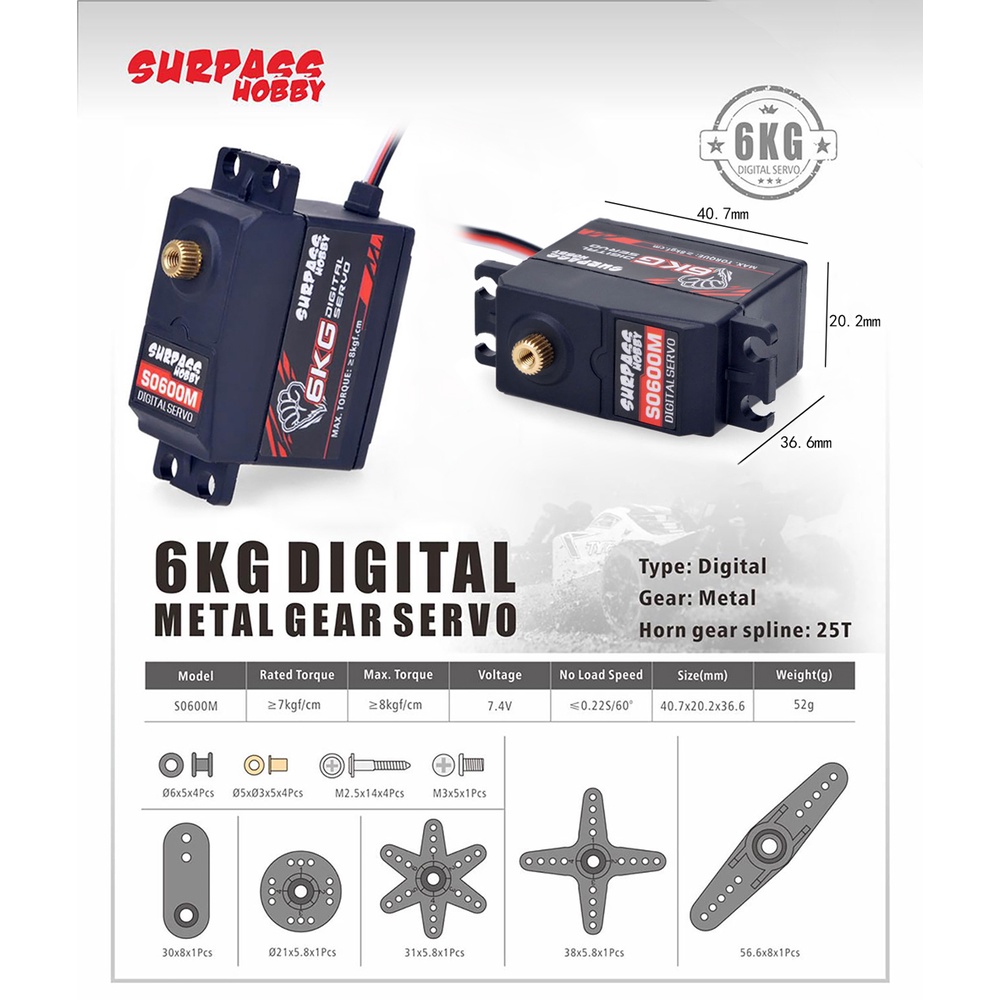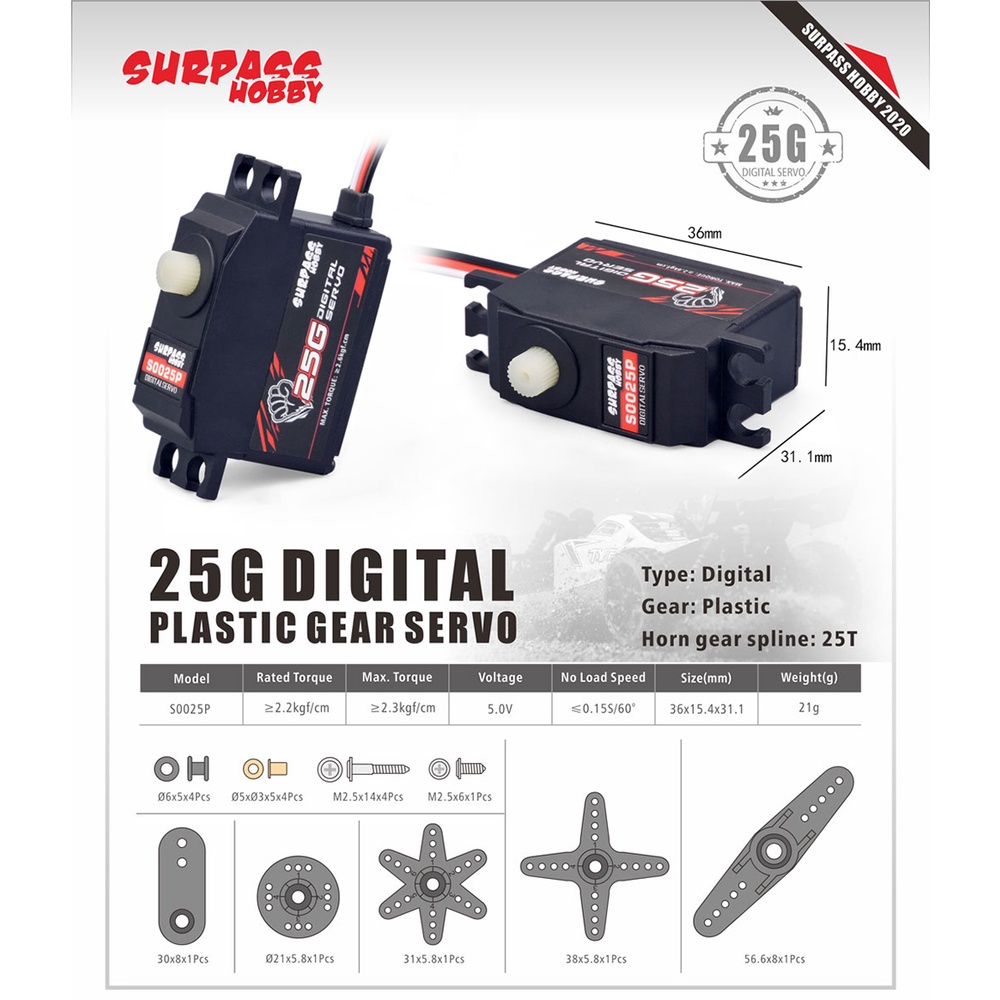 Surpass Hobby Digital Servo 9g 17g 25g 6kg 9kg 15kg 16kg 20kg 23kg 24kg 25kg for 1/24 1/18 1/16 1/12 1/10 1/8 1/7 1/5 RC Car Boat