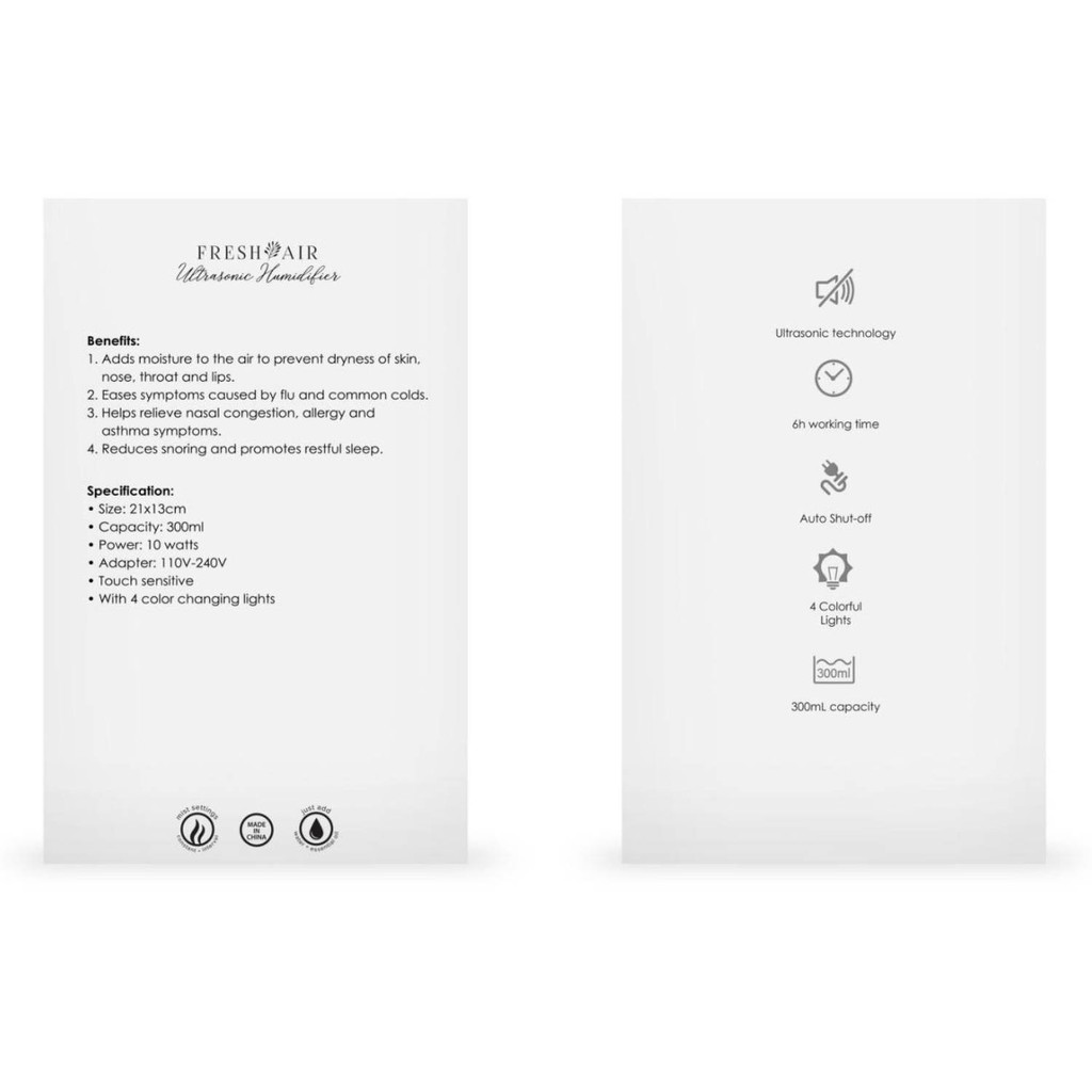 Surplus Fresh Air Glossy Ultrasonic Humidifier 300mL