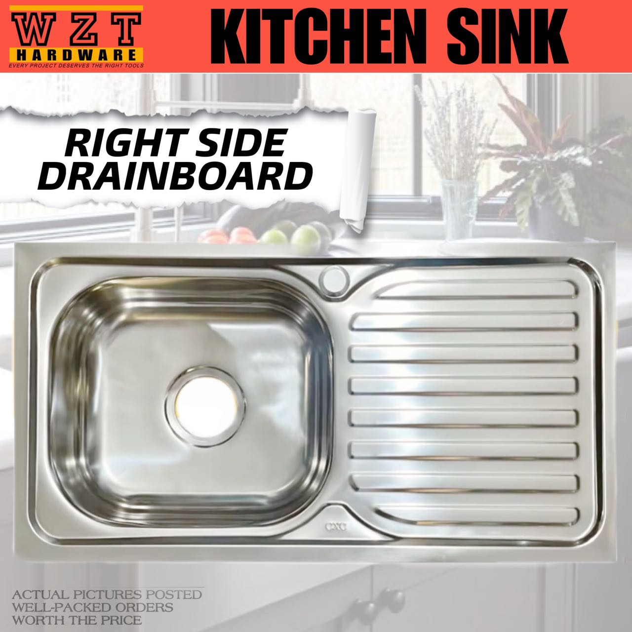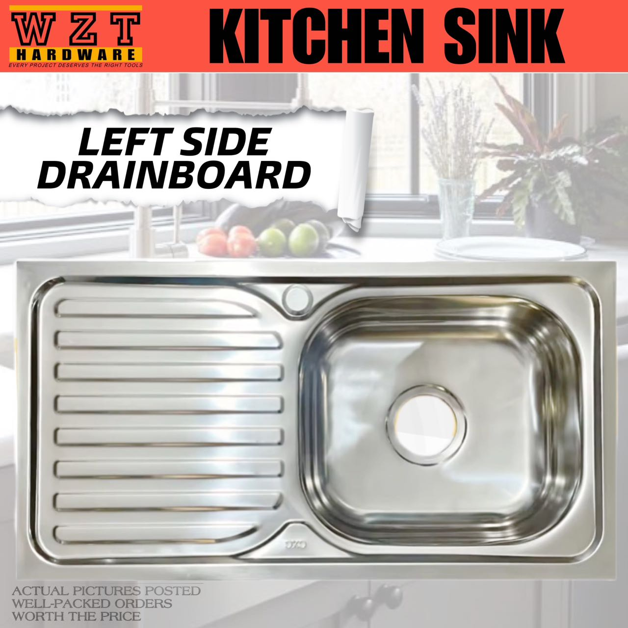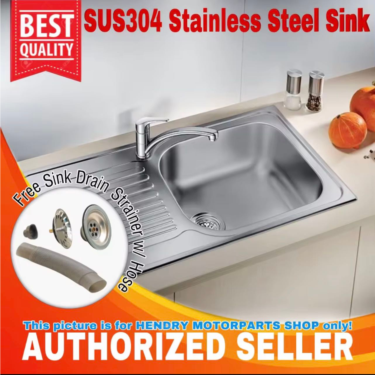 Sus 304 High Quality Stainless Steel Kitchen Sink / Faucet with Drainer and Free Strainer ( Lababo )