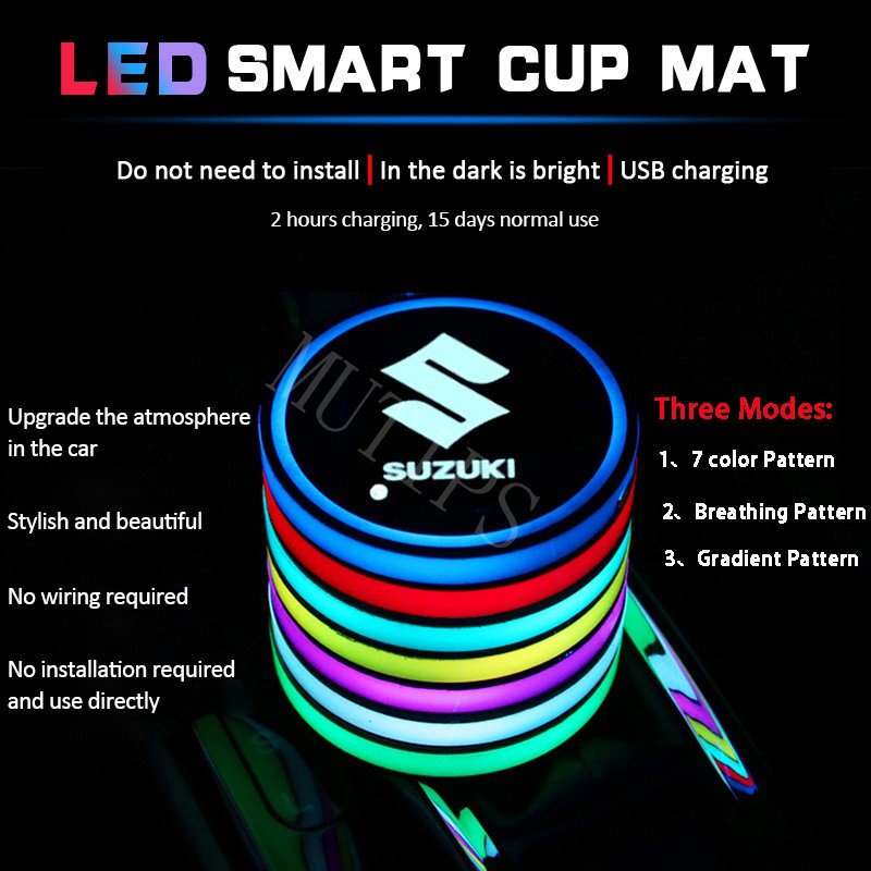 Suzuki 7 Color LED Car Cup Mat Pad Light Holder Drink Coaster Pad Car Interior Decoration For Swift Ertiga S-Presso XL7 Celerio Jimny Grand Vitara Dzire Ciaz