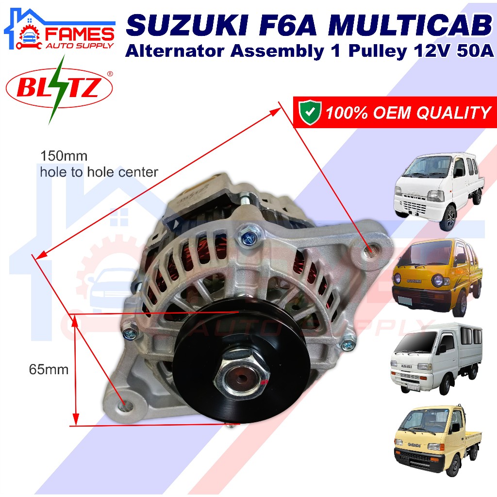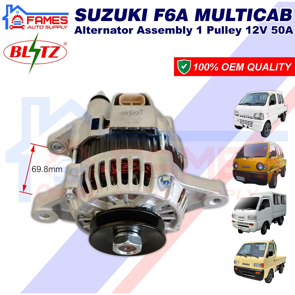 Suzuki F6A Multicab Alternator Assembly 1 Pulley 12V 50A w/ Pump (BAS-8102) BLITZ PRODUCTS