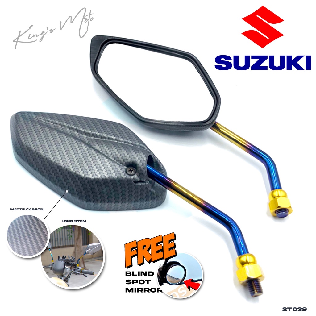 Suzuki Raider R150 - Carb | MOTORCYCLE CARBON SIDE MIRROR GENUINE PARTS 2TONE LONG STEM | COD