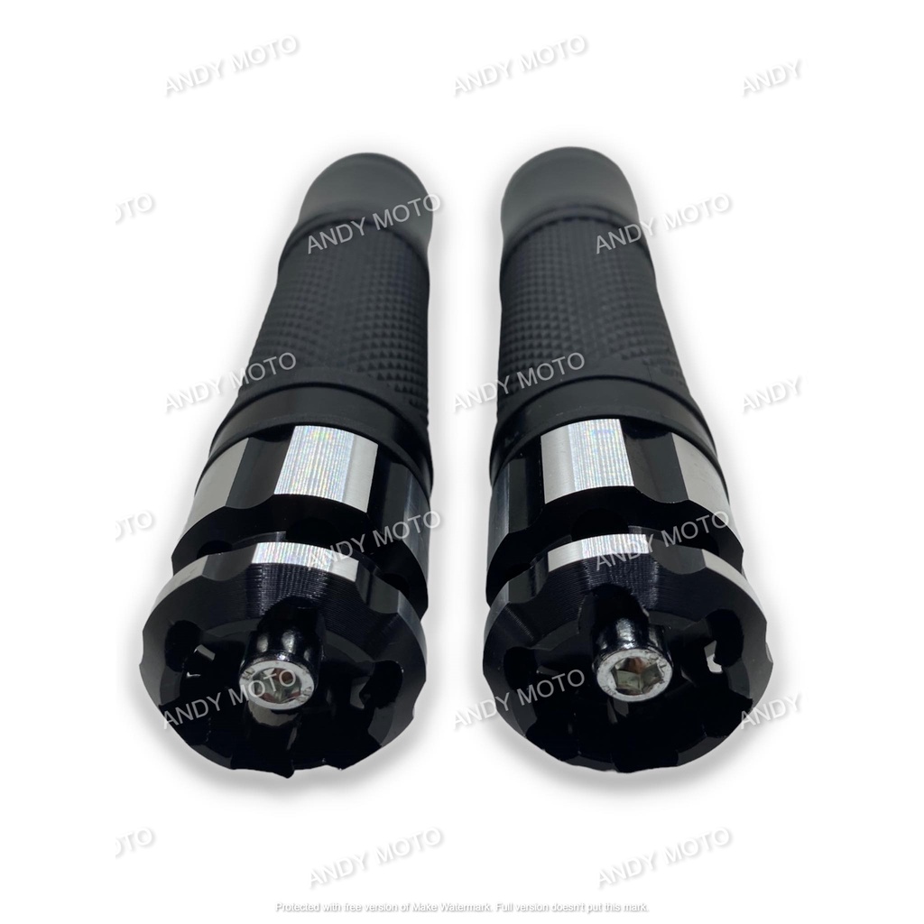 Suzuki Smash 115 | UNIVERSAL HANDLE GRIP BLACK SILVER STEEL BAR END W/FREE THROTTLE CLAMP | COD