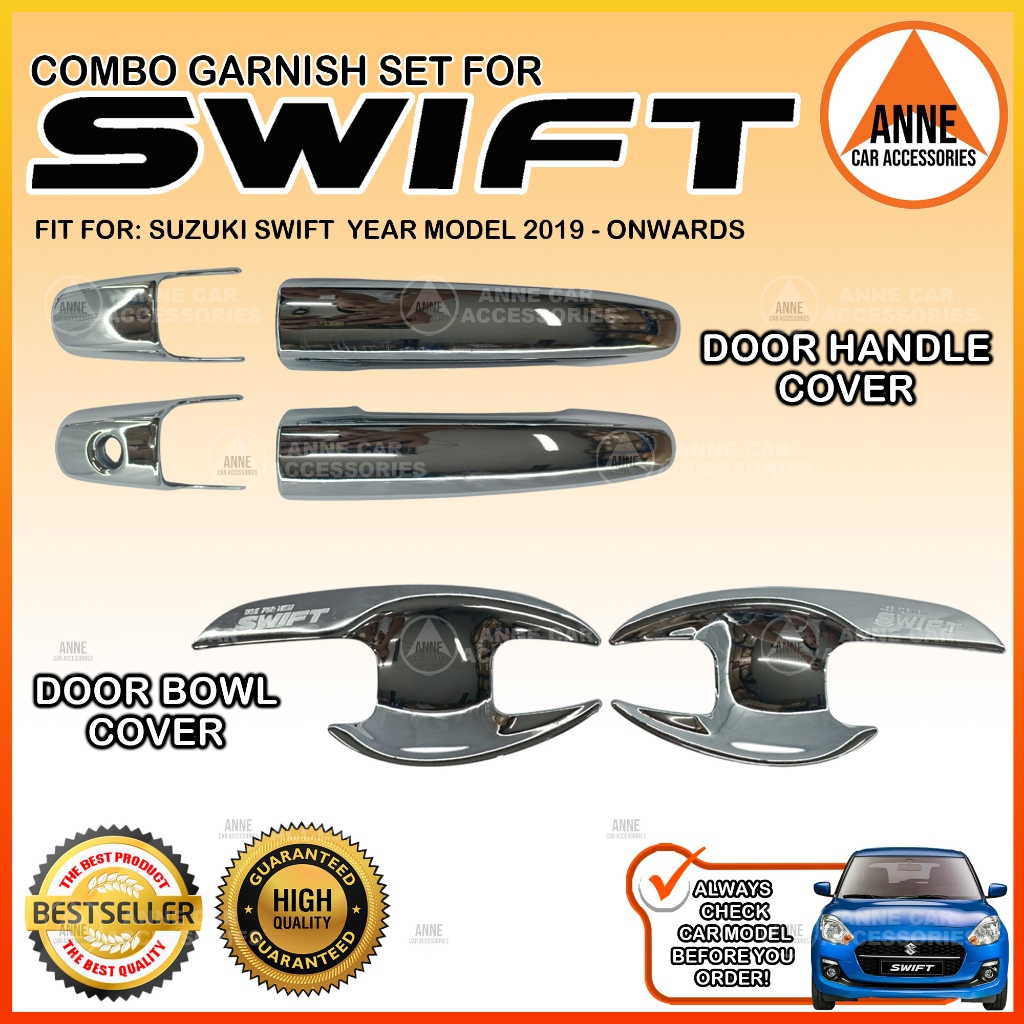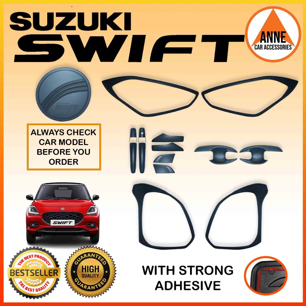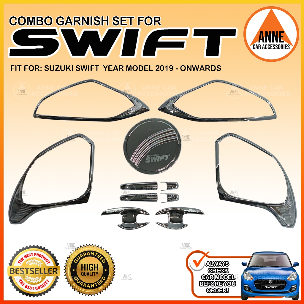 Garnish Cover Set for Suzuki Swift 2019 2020 2021 2022 2023 2024 2025 / Combo Set (Black / Chrome)