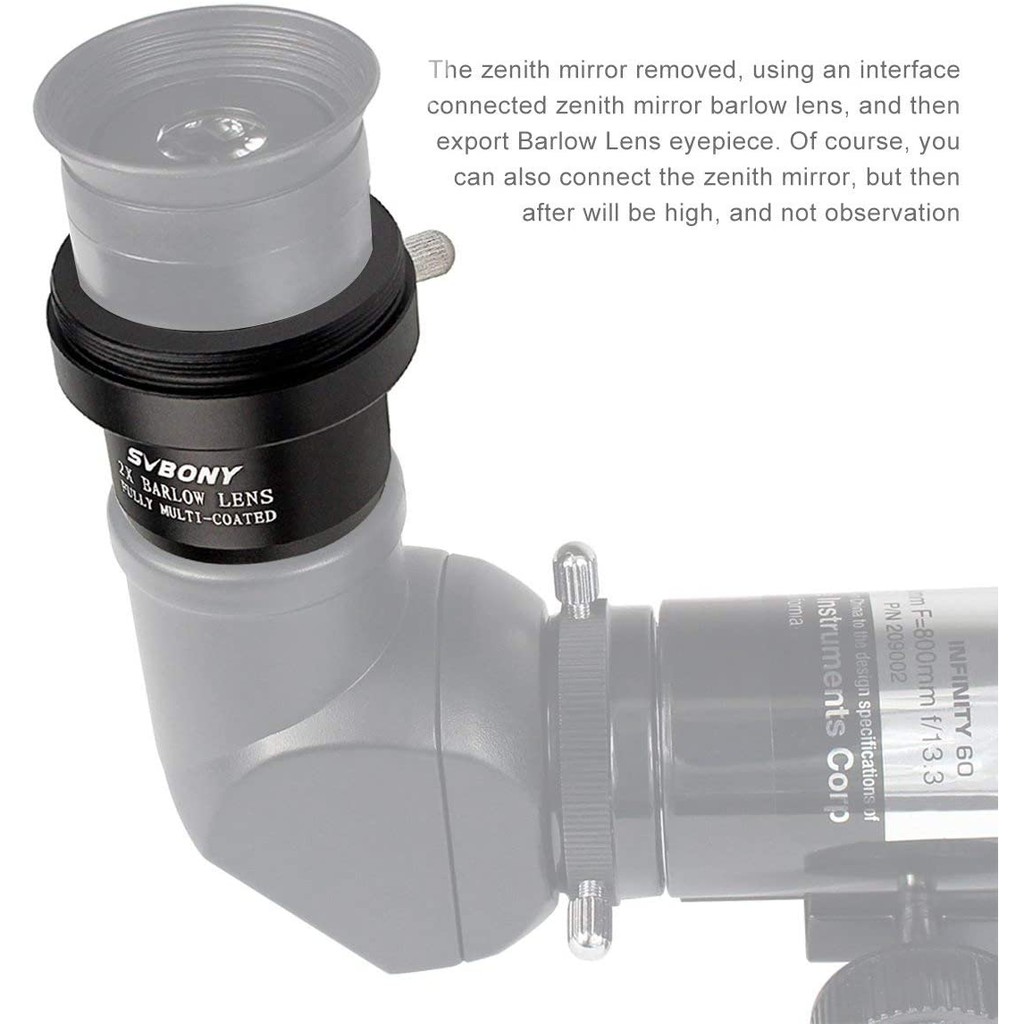 Svbony 2X Barlow Lens 1.25Inch With M42 Threads Camera Interface Multi-Coated All Metal For Astronomy Telescope
