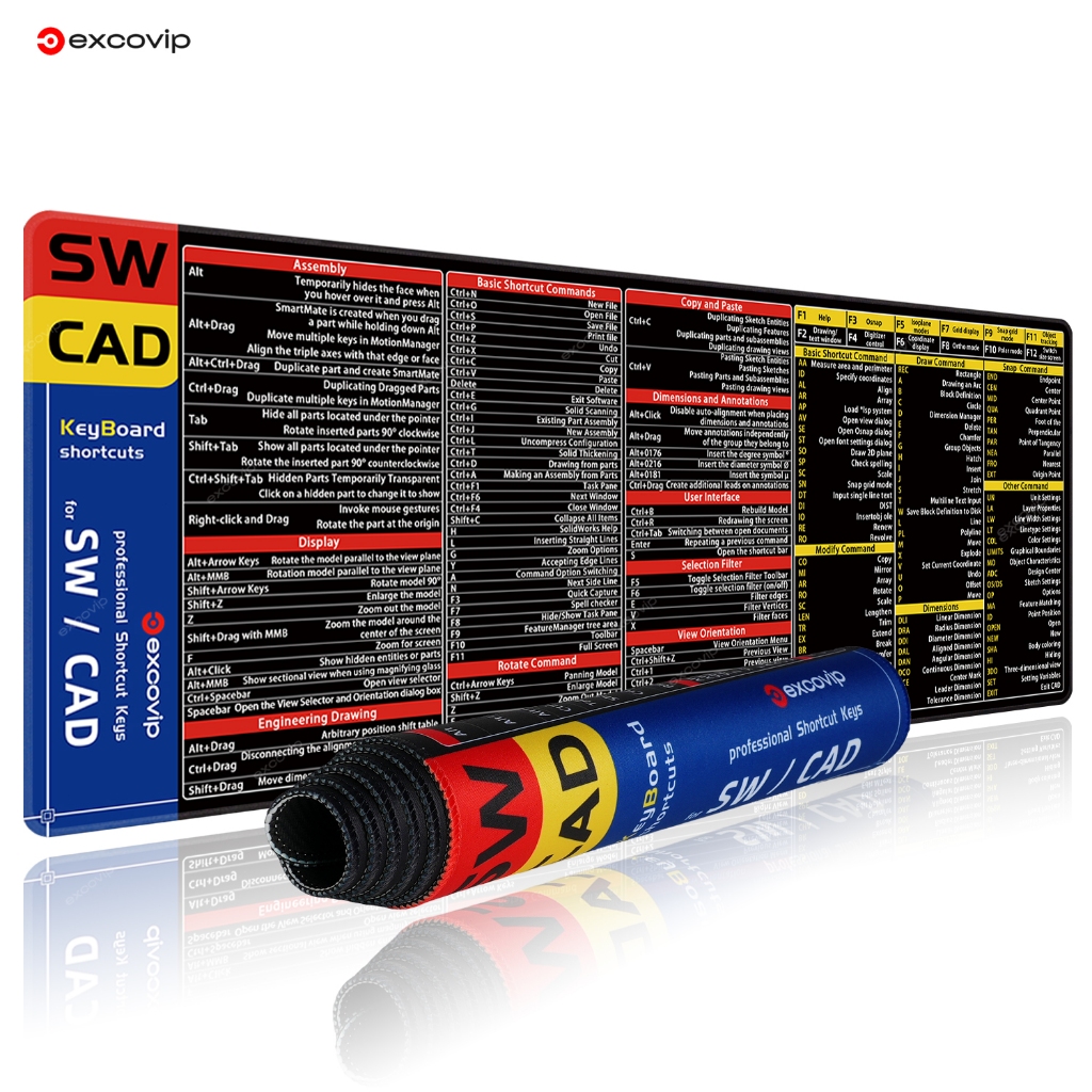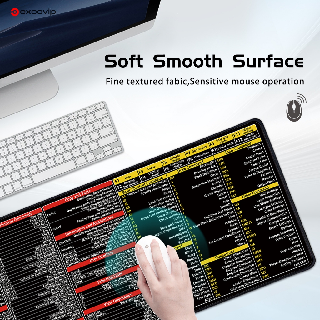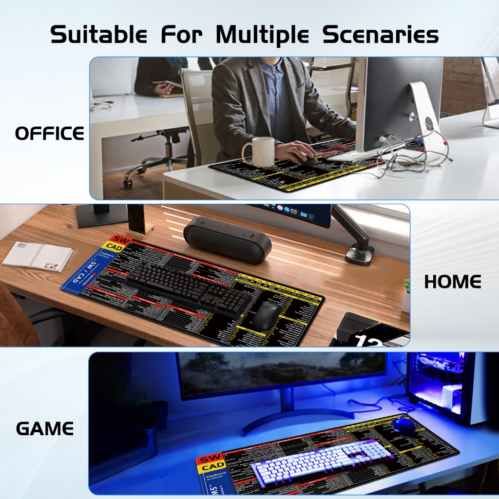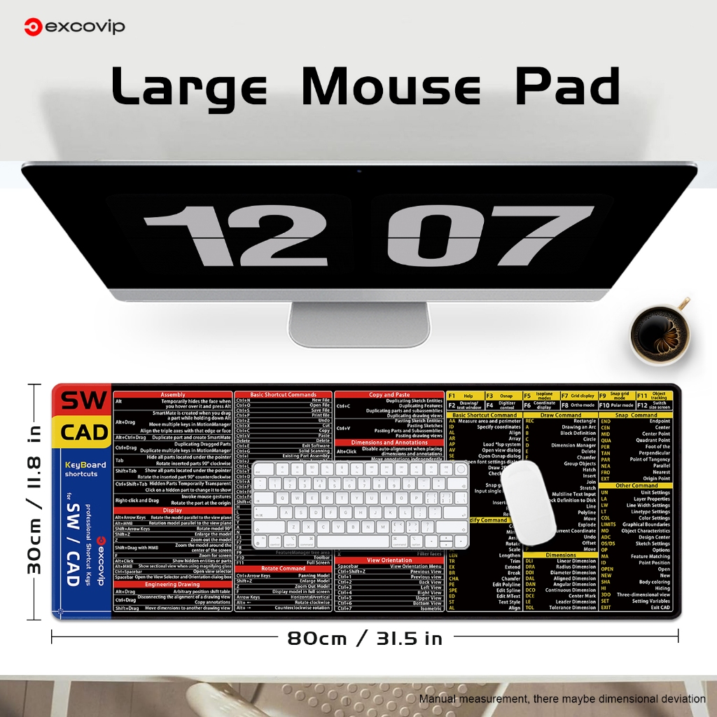 Sw & CAD English Shortcut Keyboard Mouse Pad Large Size Desk Pad Soft Comfortable Anti-Slip Hemming Entity Model Design Learning Office Black 80 * 30cm