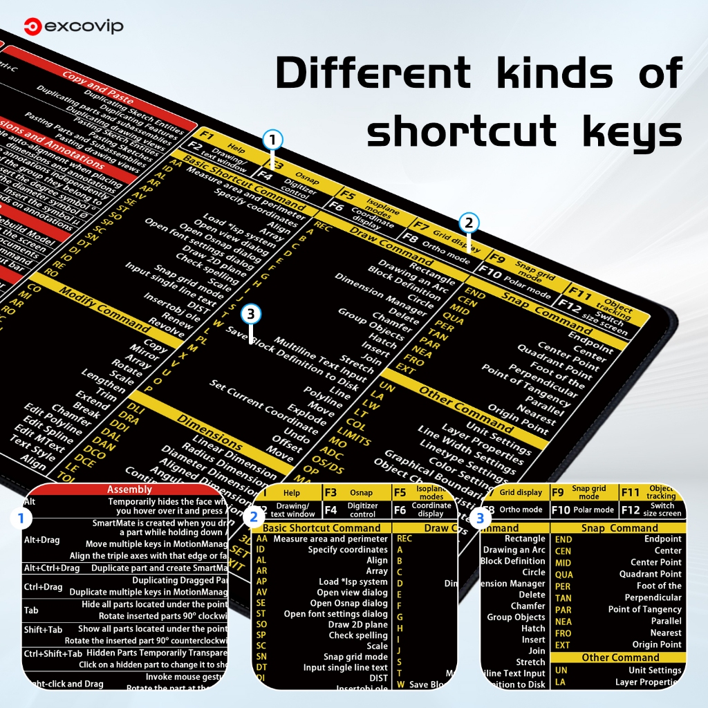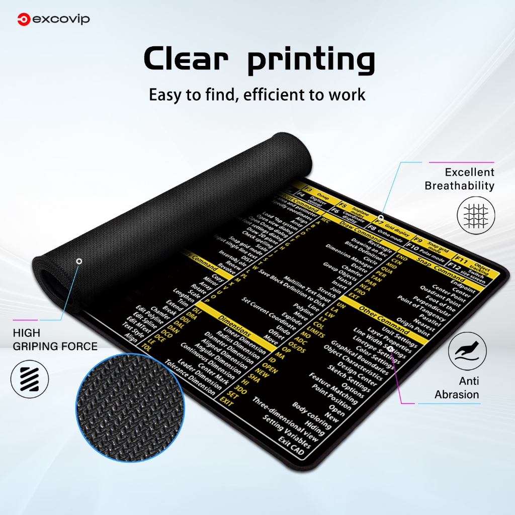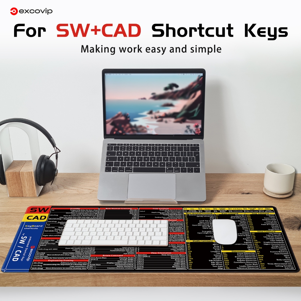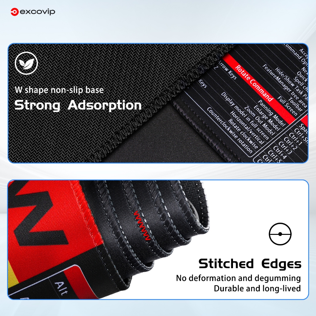 Sw & CAD English Shortcut Keyboard Mouse Pad Large Size Desk Pad Soft Comfortable Anti-Slip Hemming Entity Model Design Learning Office Black 80 * 30cm