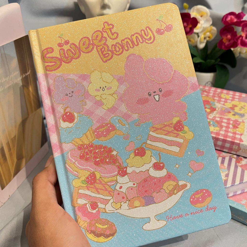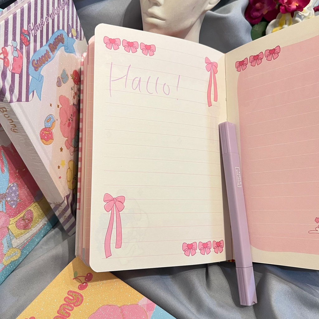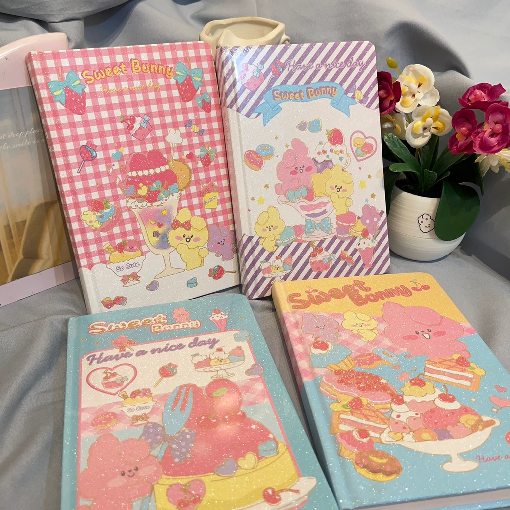 Sweet Bunny model hard cover A5 notebook contains 50 sheets. cute patterned striped notebook, complete with fancy best quality children's school supplies