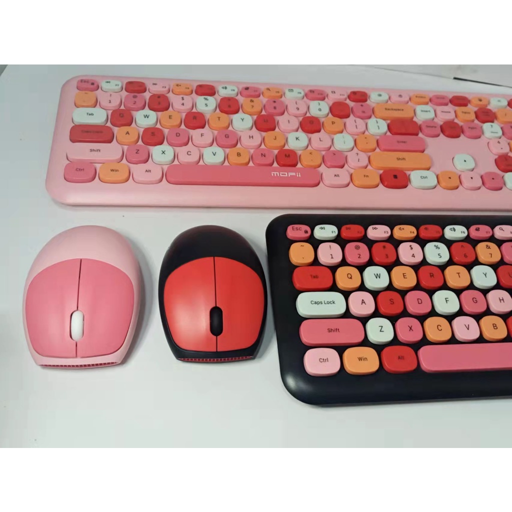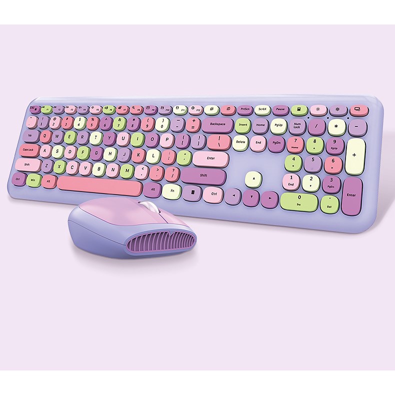 Sweet Mixed Color Wireless Keyboard and Mouse Combo Punk Keyboard Mouse Set with Round Keycaps