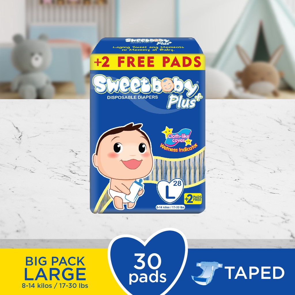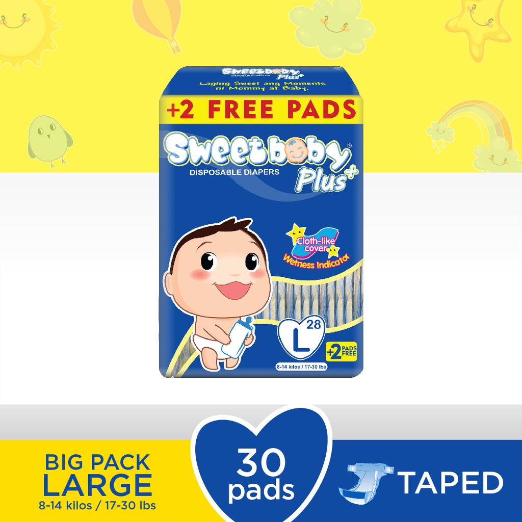 SWEETBABY PLUS TAPED DIAPER - BIG PACK - LARGE- 28+2 PADS ONE PACK