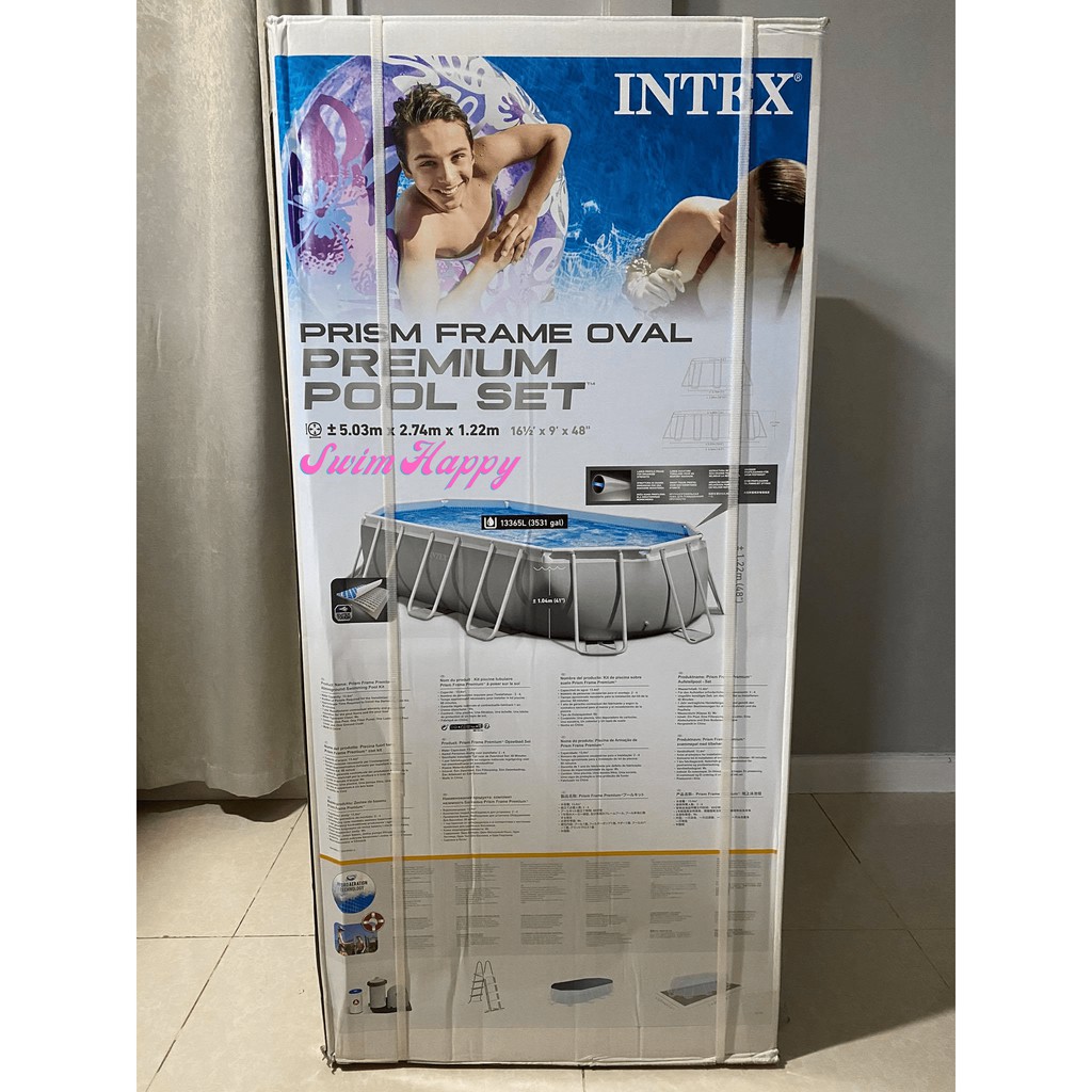 SwimHappy INTEX Prism 5.03m x 2.74m x 1.22m (4ft Deep) Oval Frame Above Ground Pool
