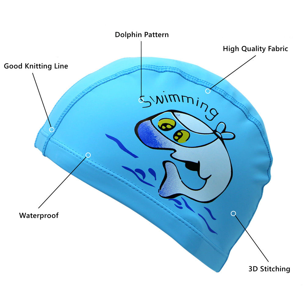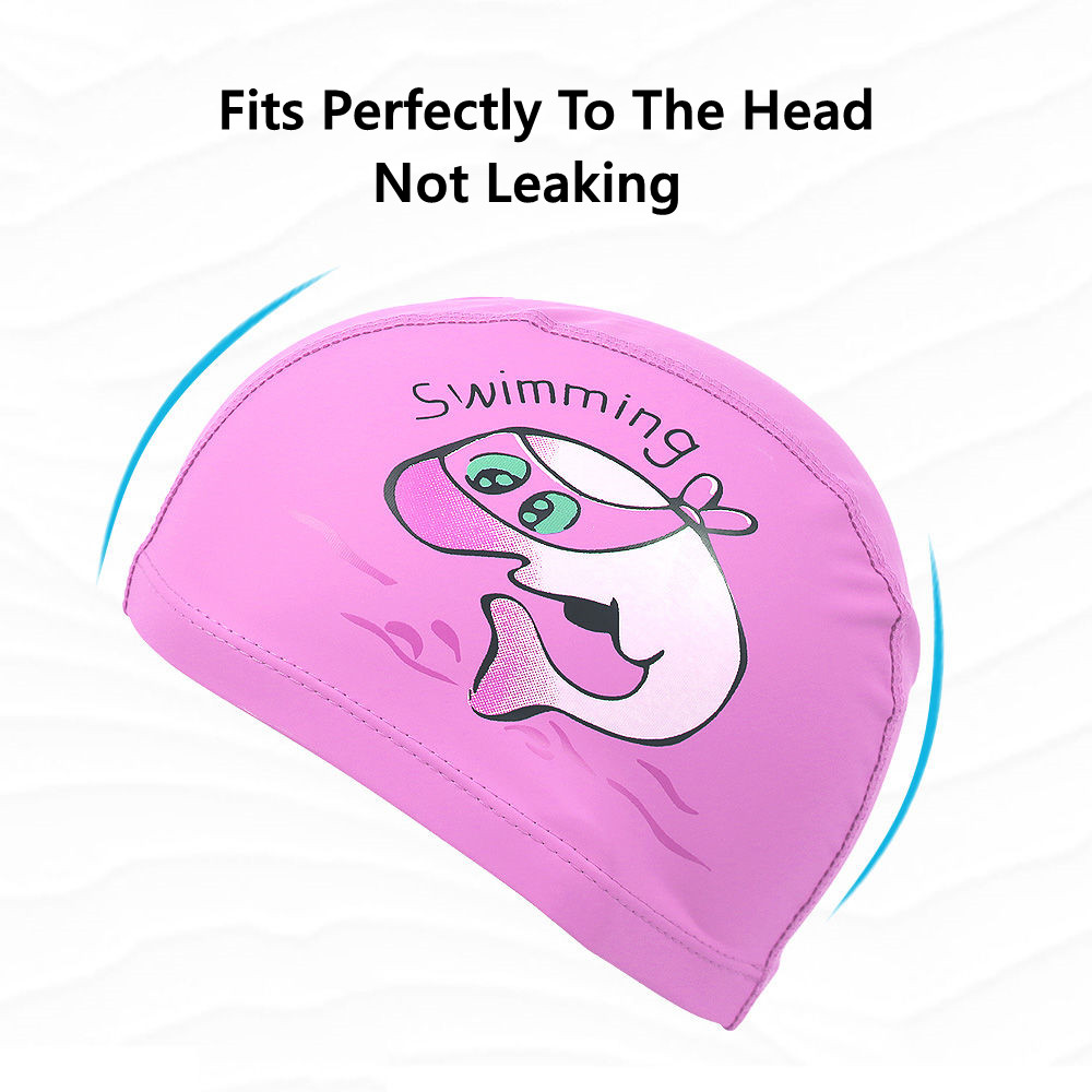 Swimming Cap Waterproof Cute Cartoon Swim Cap for Youth Kids Non-Slip Elastic PU Coating Protective Earmuffs Wrap Cover Non-Toxic Eco-Friendly Swimming Hats for Girls Boys 3-12Yrs