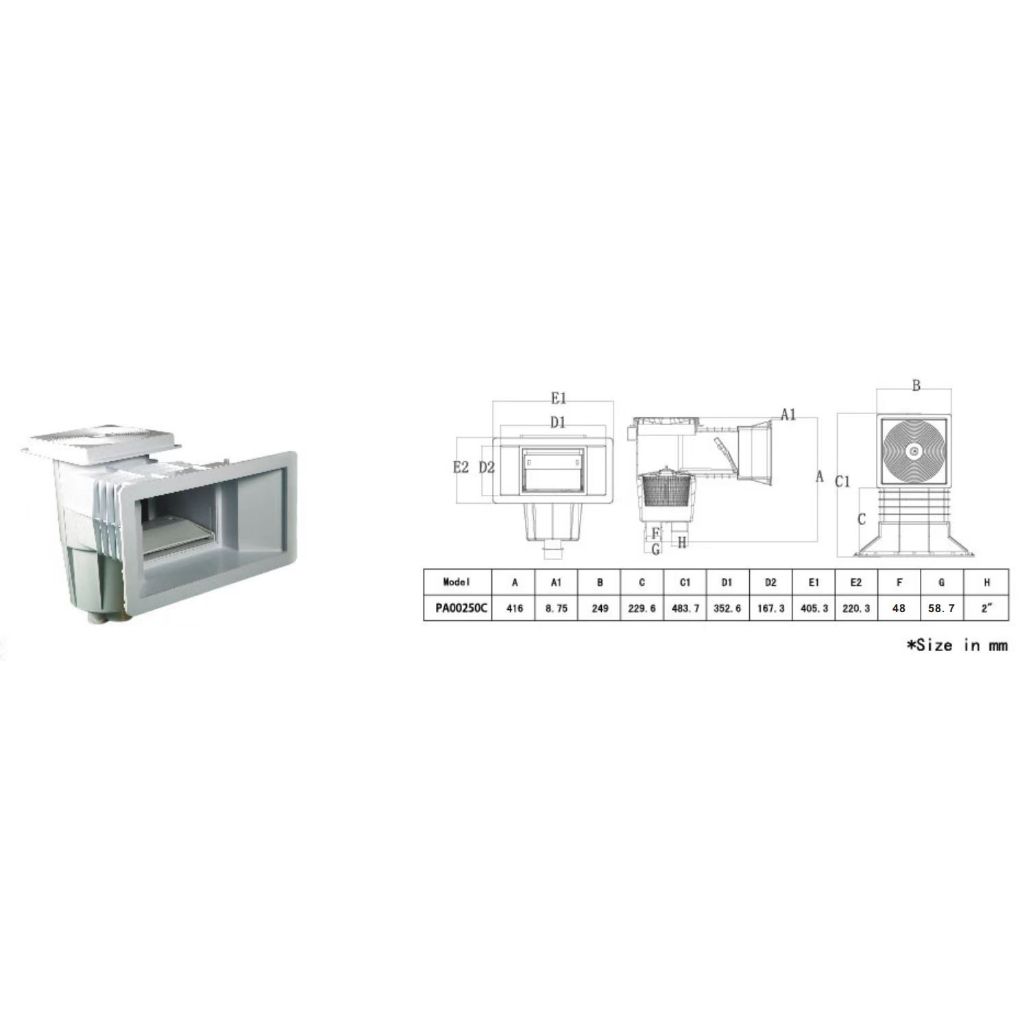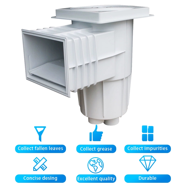 Swimming pool wall inlet skimmer standard wide mouthed return water collector hair collection