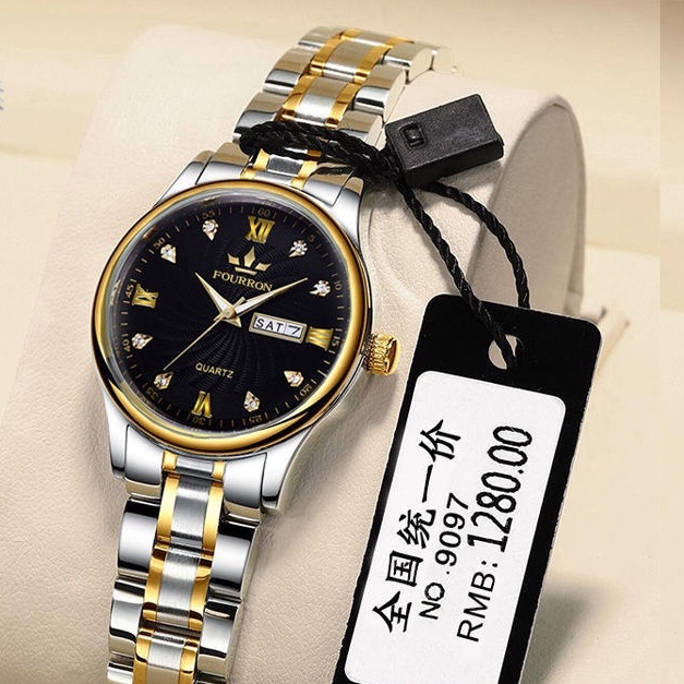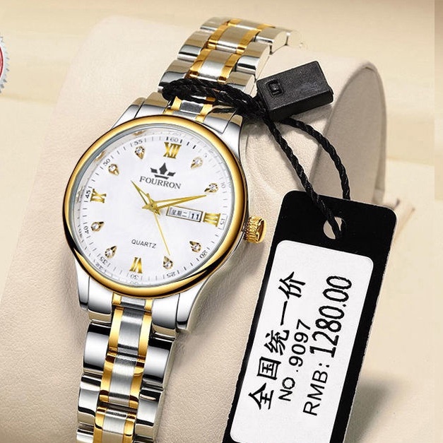 Swiss ladies automatic movement watch dual calendar luminous waterproof fashion thin steel simple Korean female students