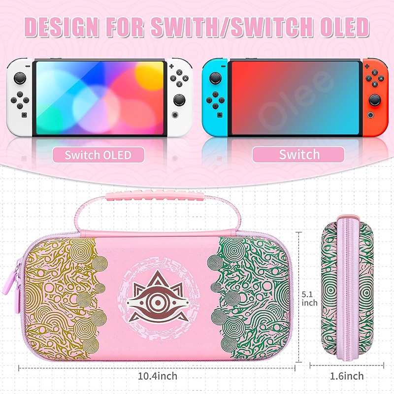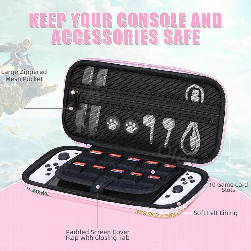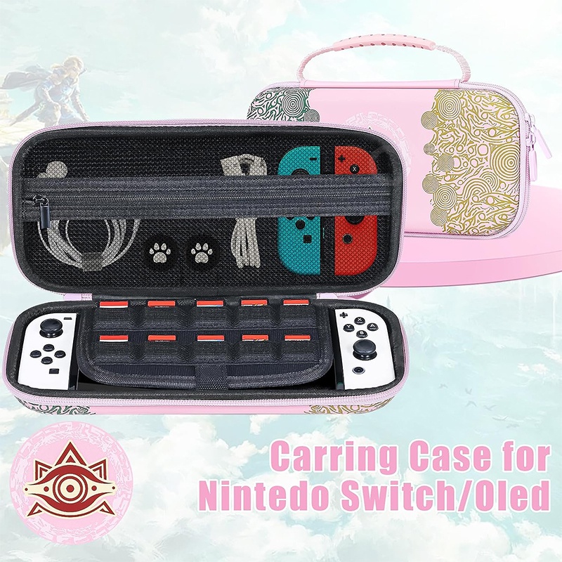 Switch Case Zelda Tear of The Kingdom,Carrying Case for Nintendo Switch/Switch OLED (Pink)