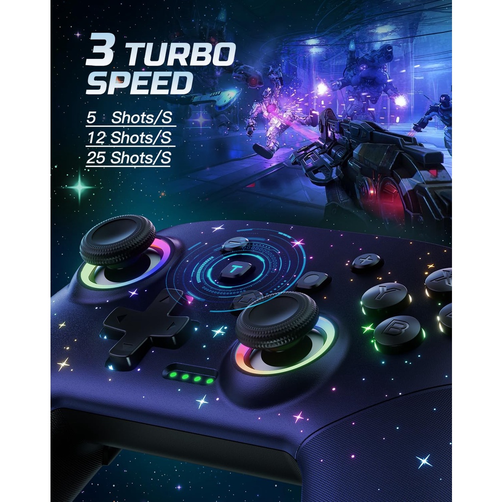 Switch Controller, LED Star Wireless Pro Controller for Switch/Lite/OLED, Multi-Platform Windows PC/IOS/Android Controller