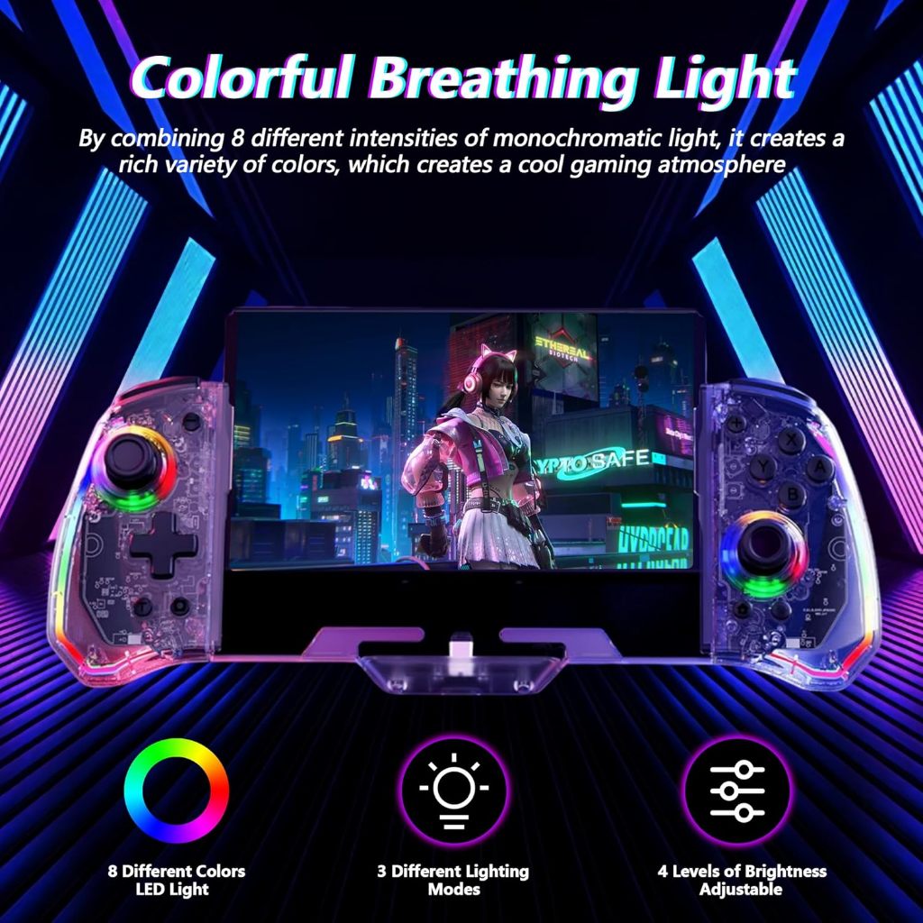 Switch Controller for Nintendo Switch/OLED, Full-Size Grip Ergonomic Handheld Mode Controller,Switch Pro Controller One-Piece Joypad with 8 Color RGB Lights/Programming/Turbo/Cable