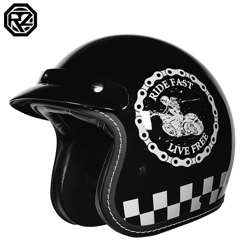 Synthetic Motorcycle Helmet Retro Vintage Chopper Scooter Cafe Racer Moto Helmet 3/4 Open Face