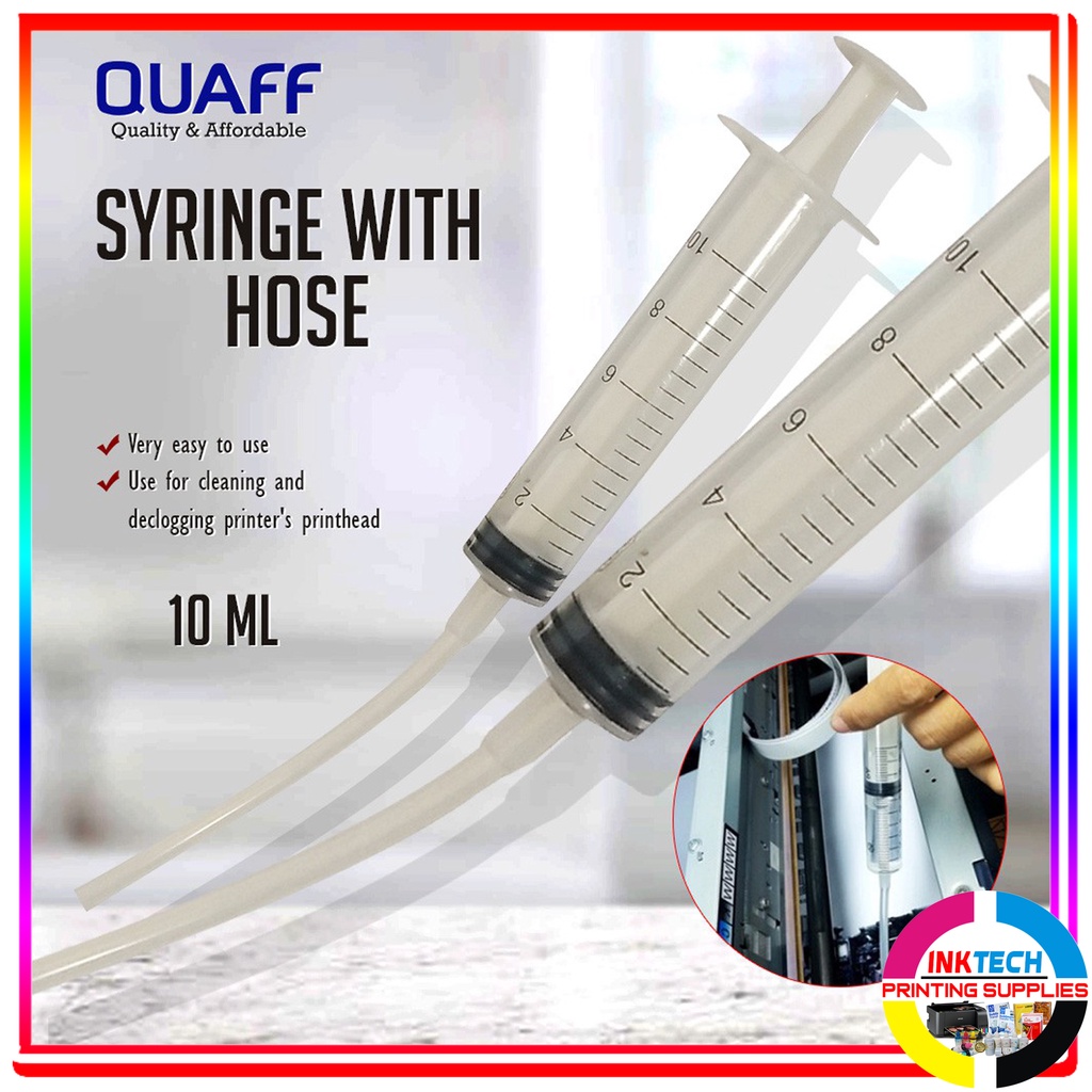 Syringe with hose for printer head cleaning and declogging