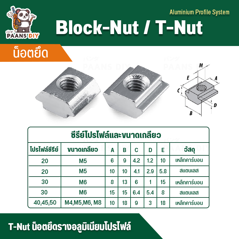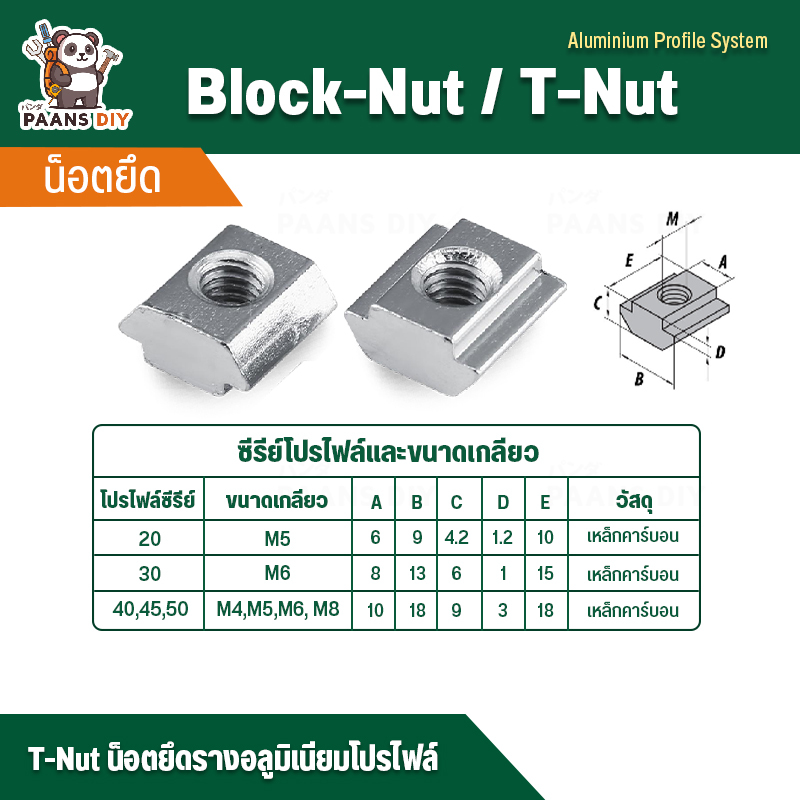 Tanut Rail Mounting Nut Aluminum Profile Work Series 20/30/40/45/50 (Block T for slot Hammer Head)