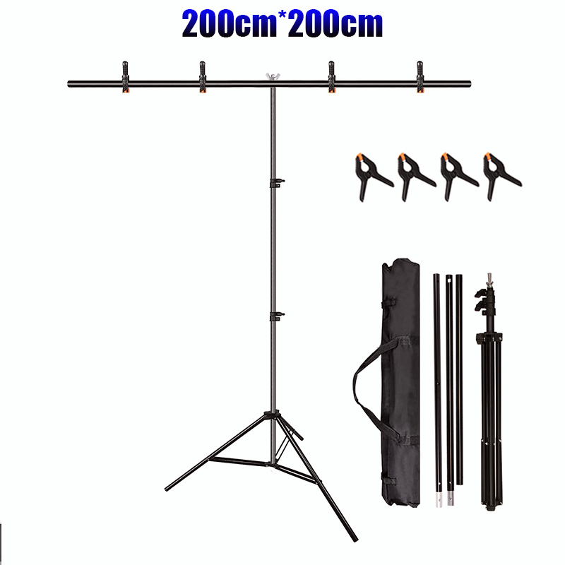 T-Shape Backdrop Stand 2 m x 2 m/6.5 ft x 6.5 ft Portable Photo Background Stand With 4 Spring Clips