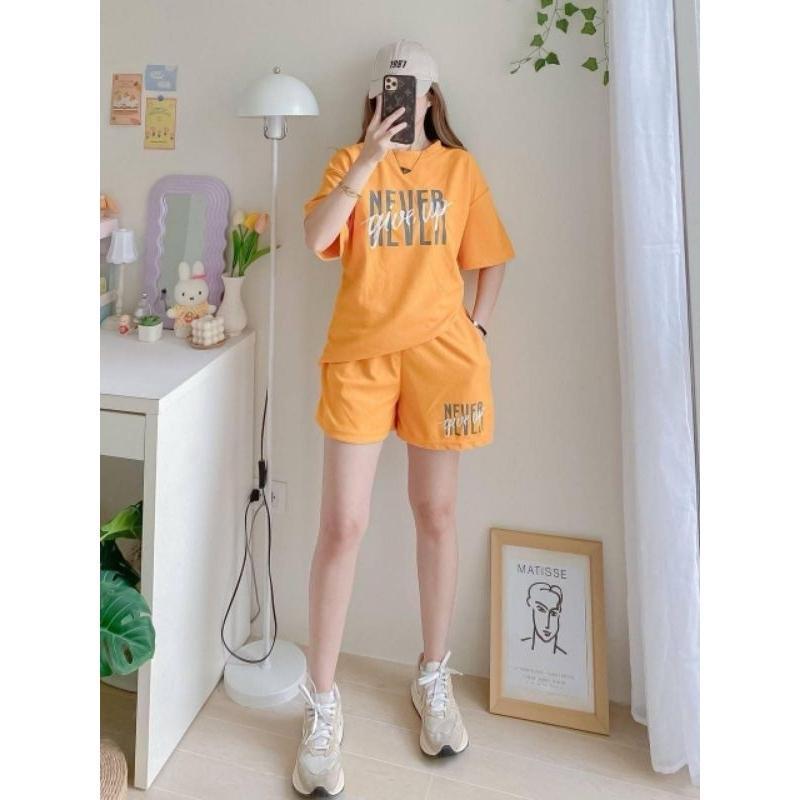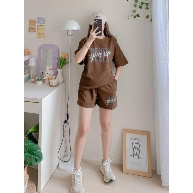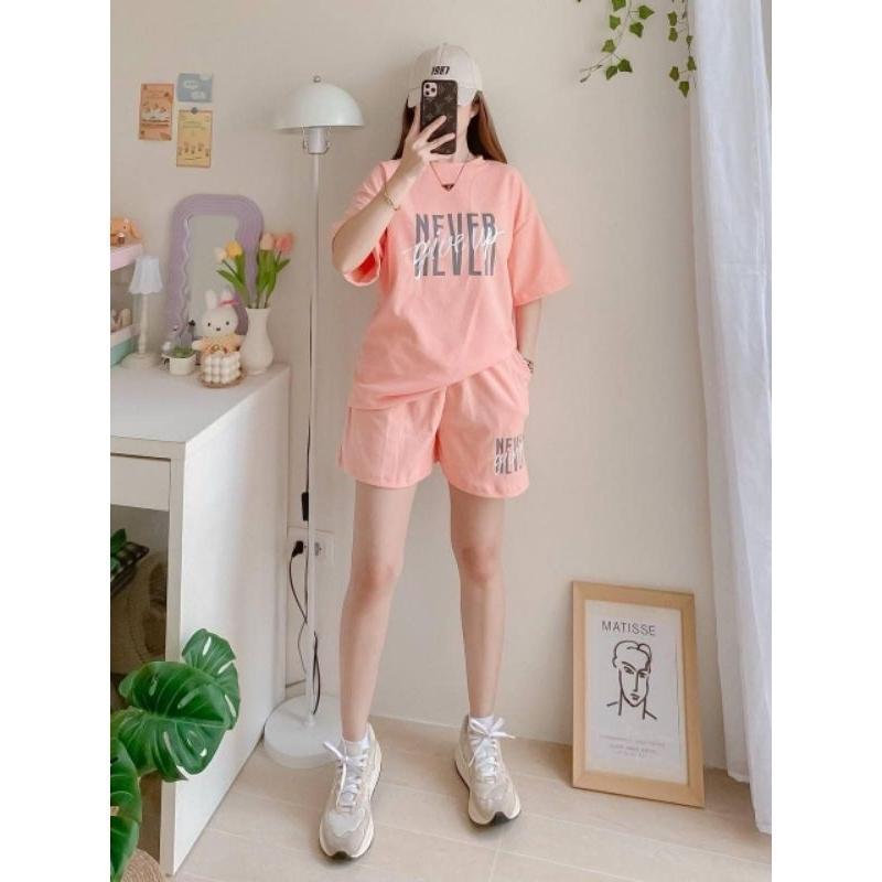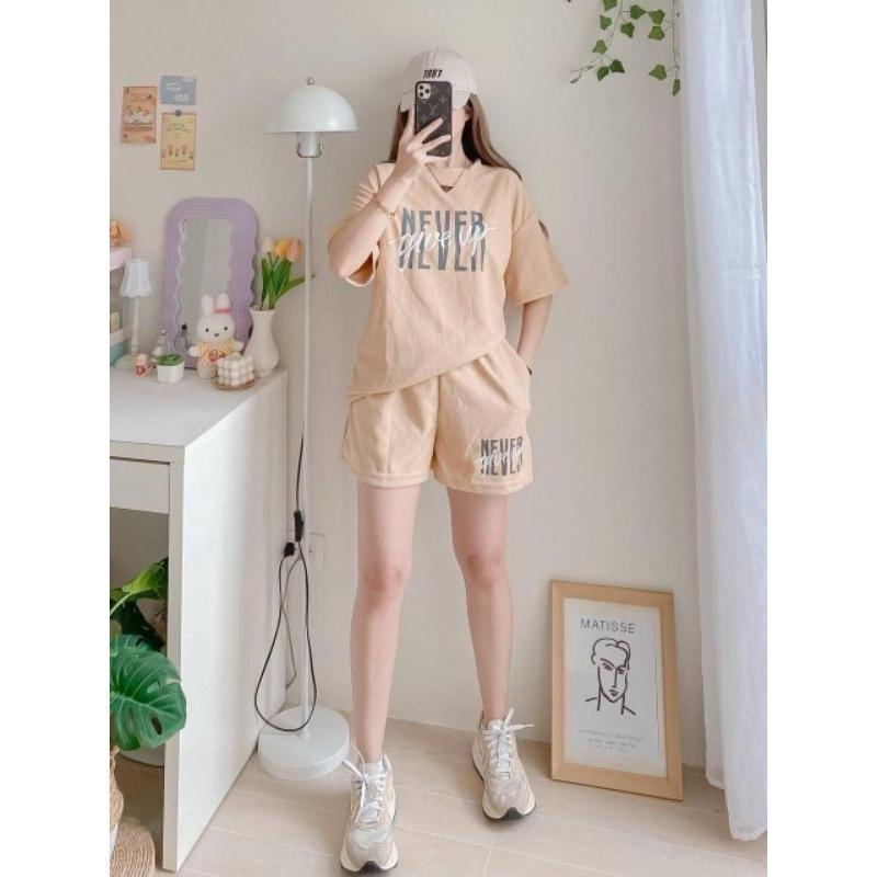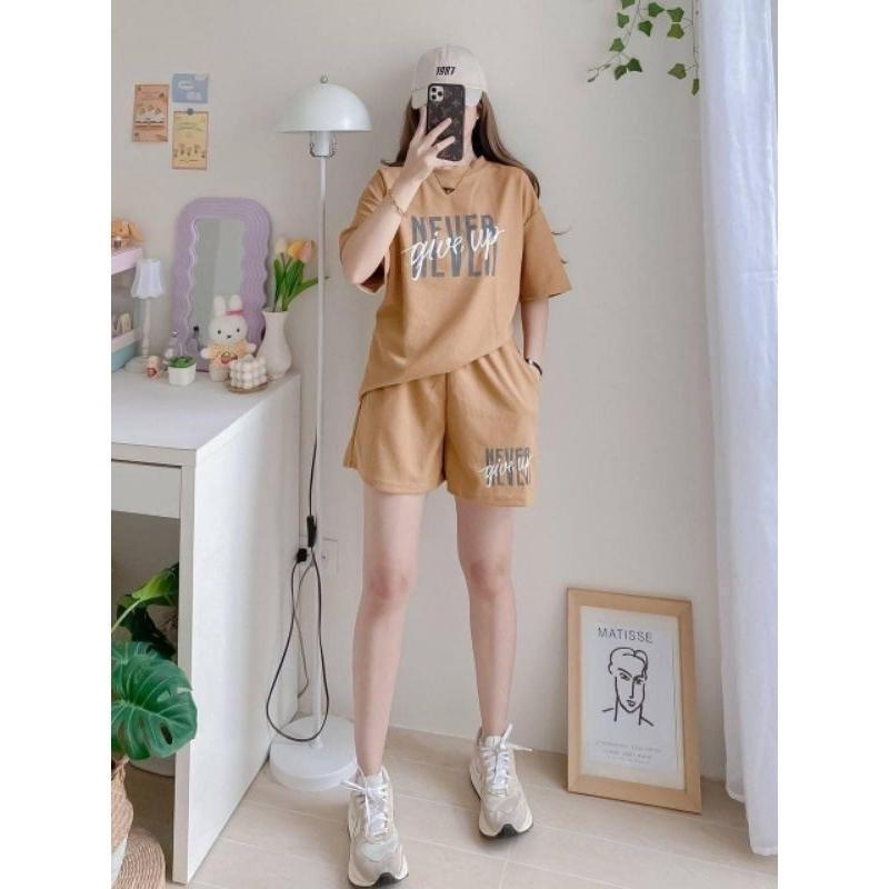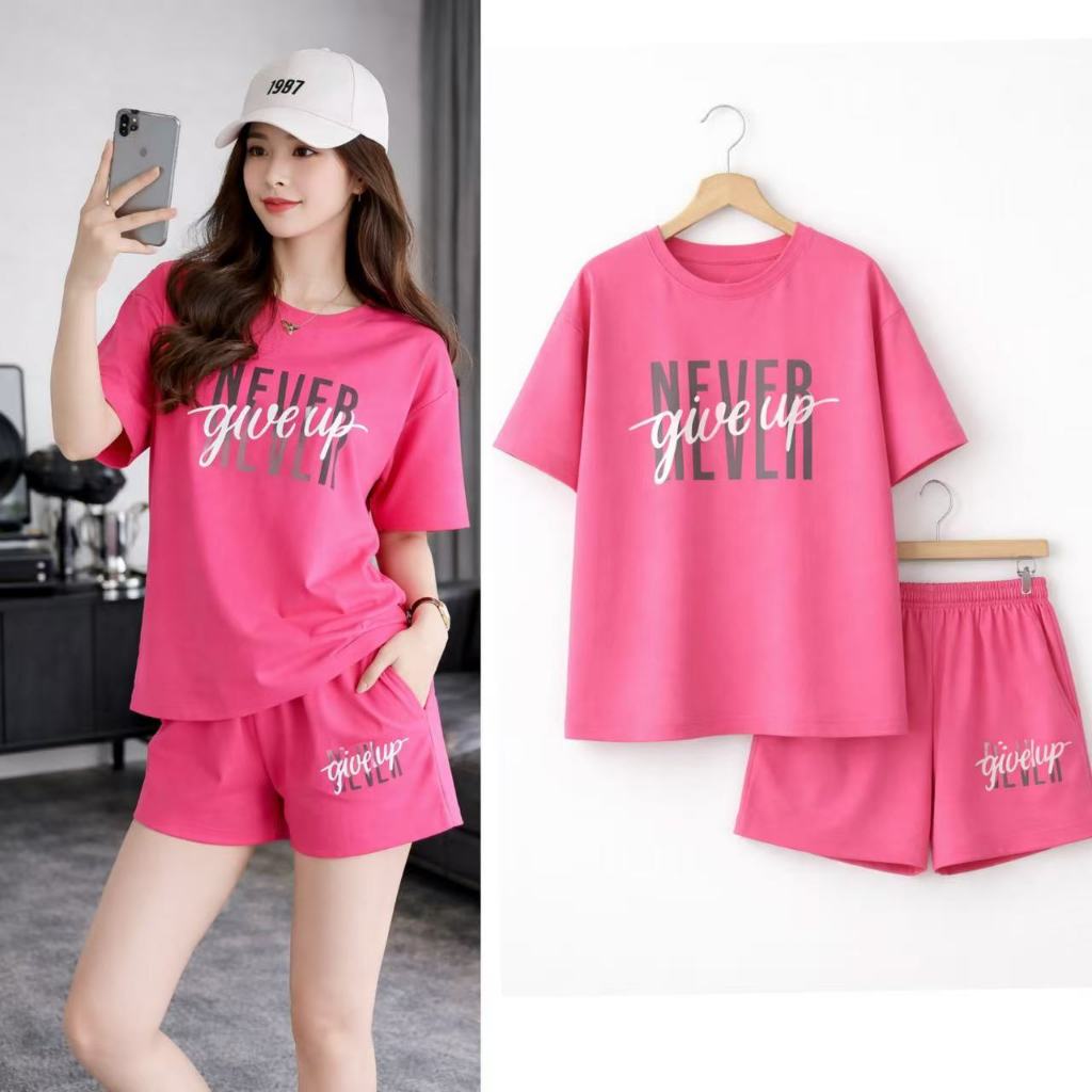 T-Shirt at Shorts Set para sa Babae – Trendy Letter Print Lounge Wear Oversized style / Loose fit